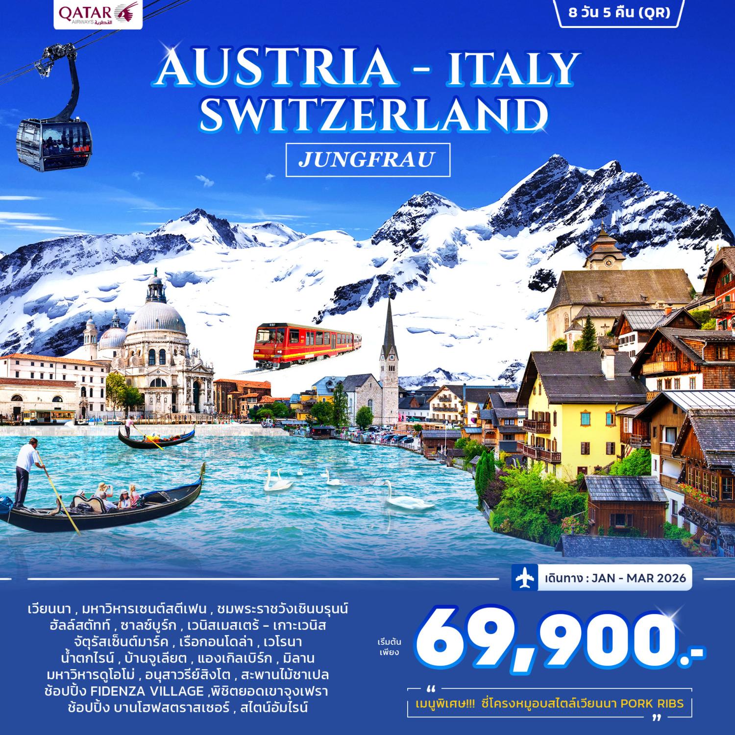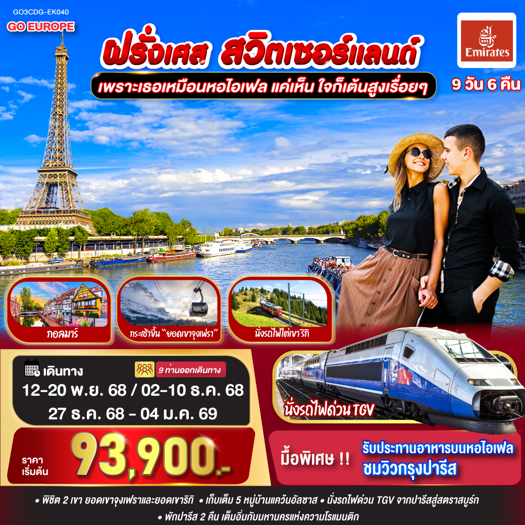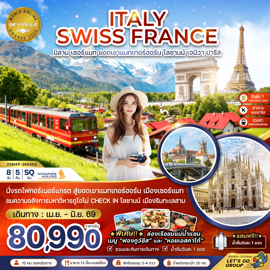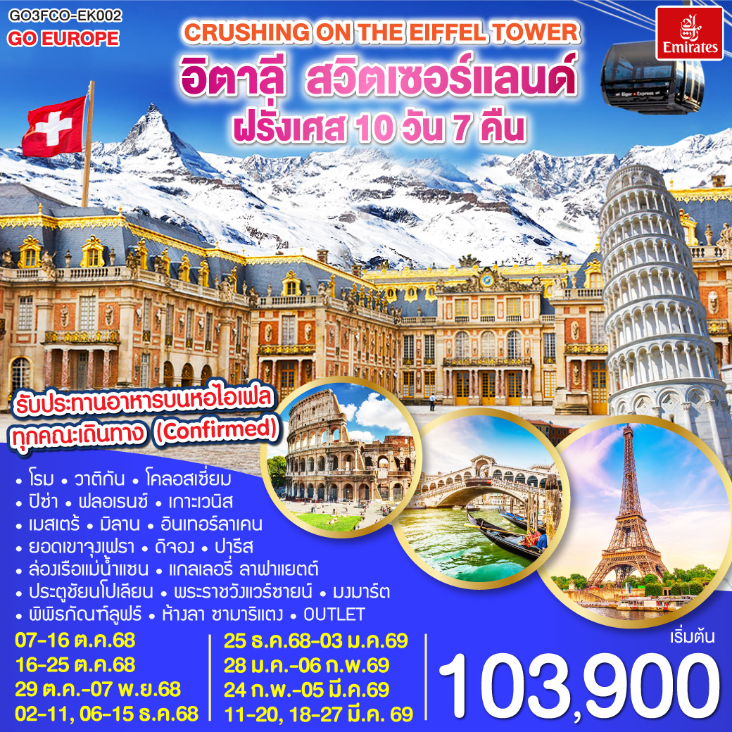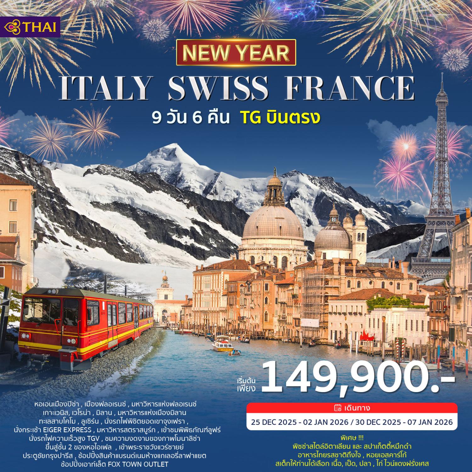 ทัวร์ฝรั่งเศส สวิตเซอร์แลนด์ อิตาลี ปีใหม่ 2026 ล่องเรือแม่น้ำแซน กระเช้าไอเกอร์เอ๊กซ์เพรส ยอดเขาจุงเฟรา 9 วัน 6 คืน รวมล่องเรือกอนโดล่า บนเกาะเวนิส