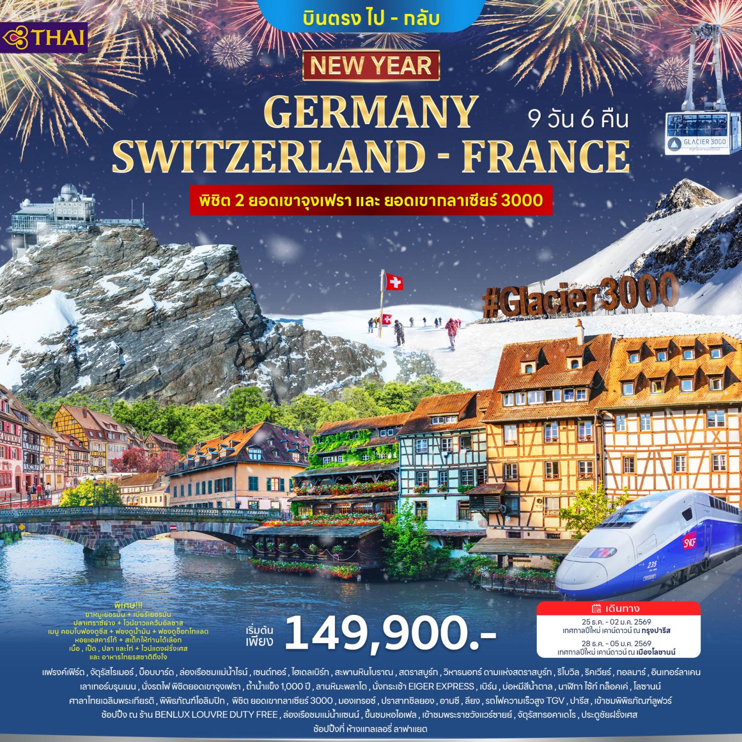 ทัวร์เยอรมนี ฝรั่งเศส สวิตเซอร์แลนด์ ปีใหม่ 2026 ปราสาทไฮเดลเบิร์ก ล่องเรือแม่น้ำแซน พิชิตยอดเขาจุงเฟรา 9 วัน 6 คืน ถังไวน์ที่ใหญ่ที่สุดในโลก มื้อสุดพิเศษ รับประทานอาหารบนหอเฟลอันสุดโรแมนติก (บินการบินไทย)