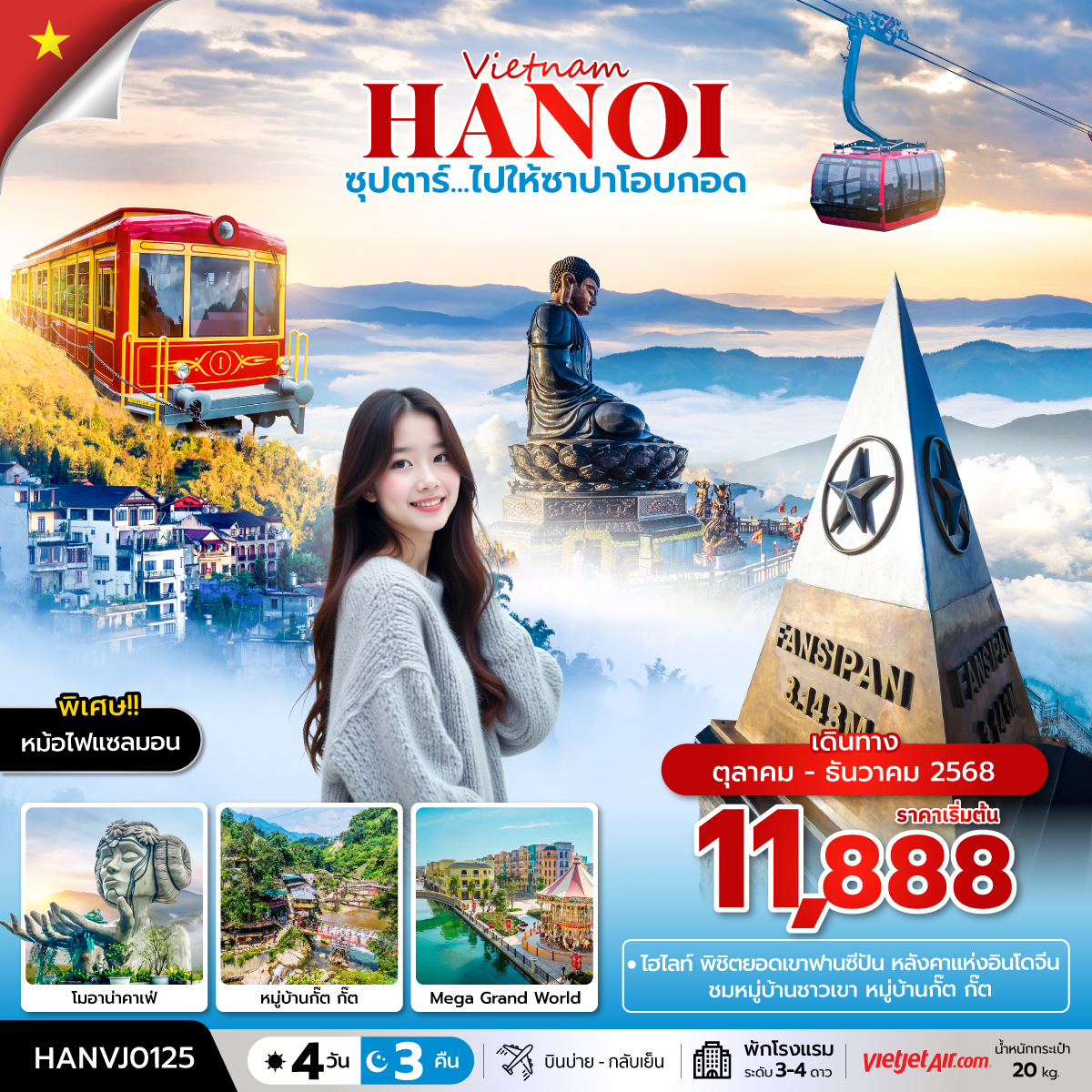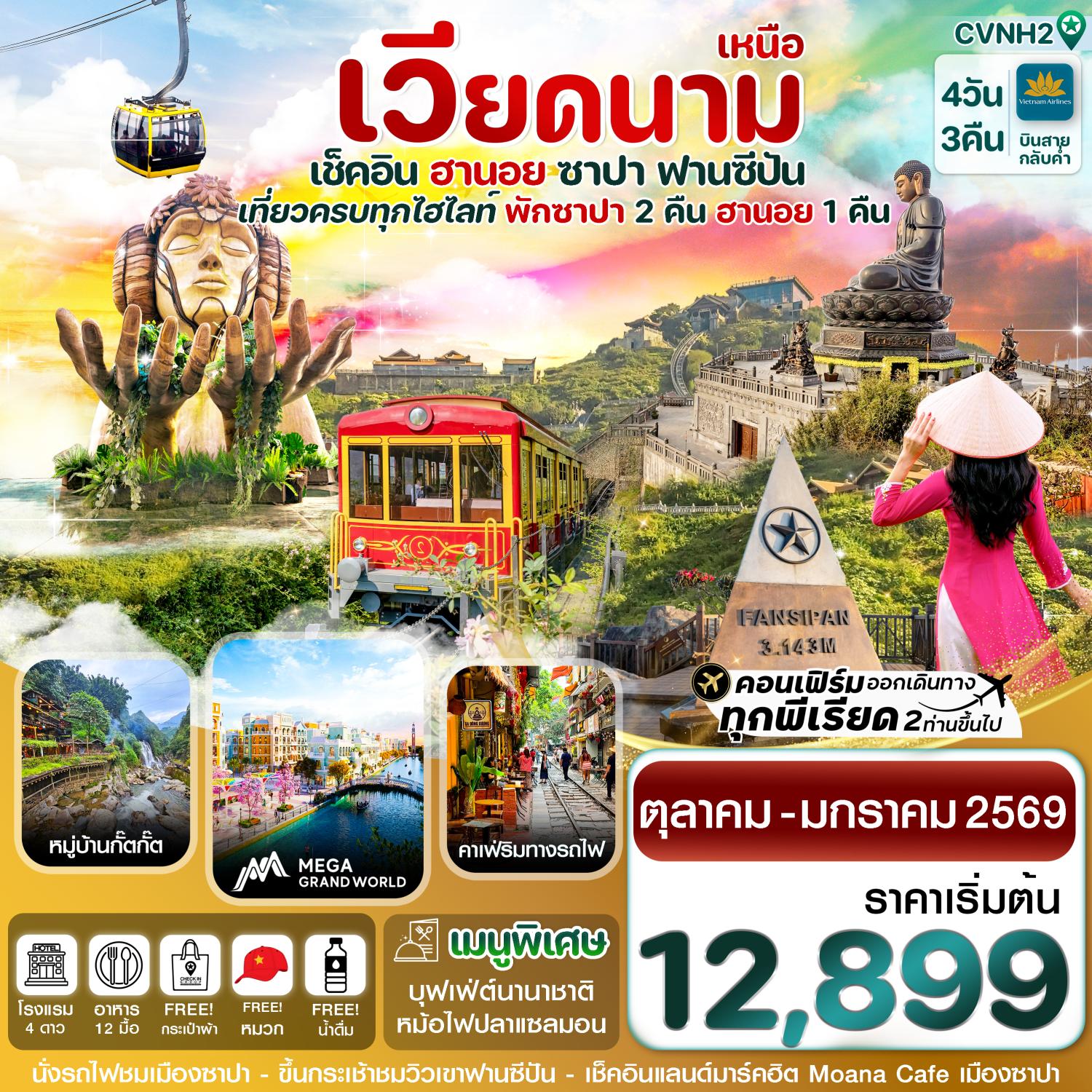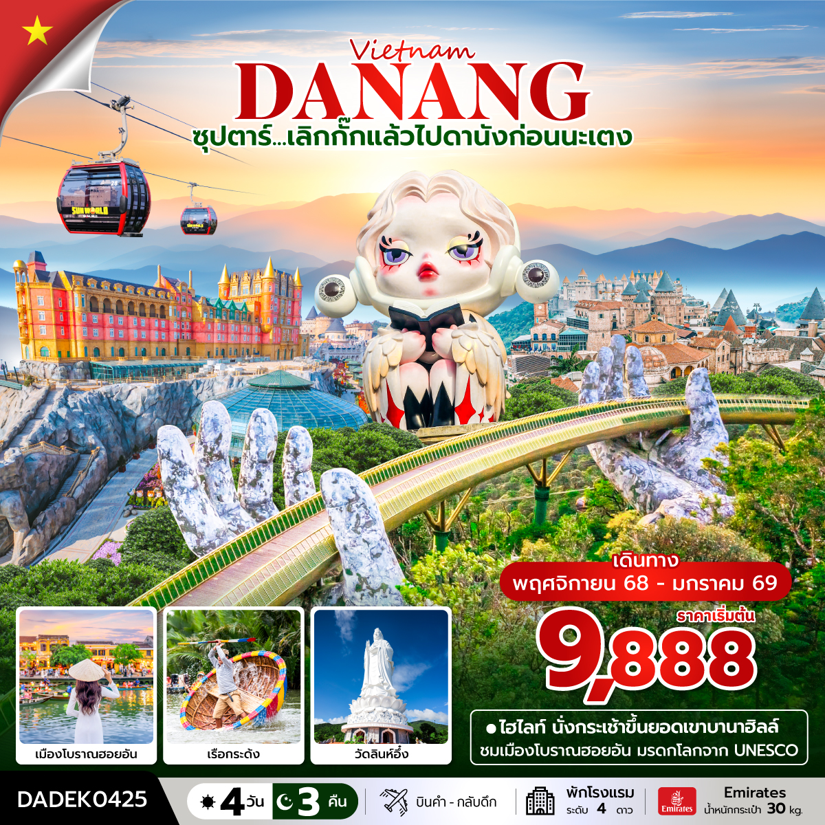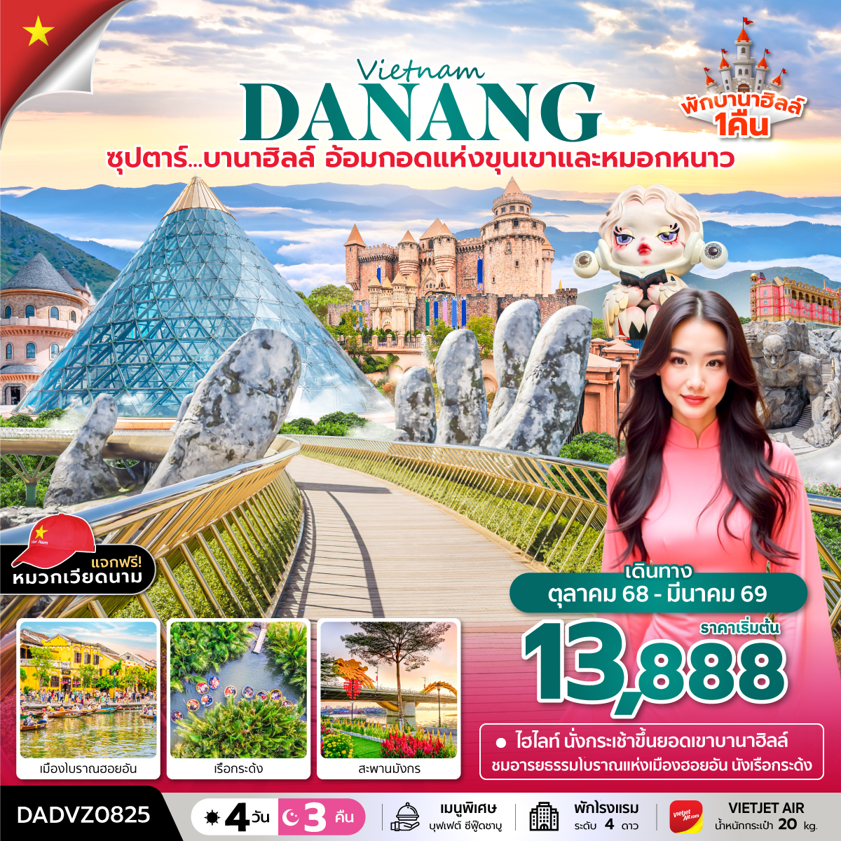 ทัวร์เวียดนามกลาง 2569 ดานัง ฮอยอัน บาน่าฮิลล์ สวนสนุกแฟนตาซี 4 วัน 3 คืน พักบานาฮิลล์ 2 คืน (ทัวร์ไม่ลงร้านช้อป)
