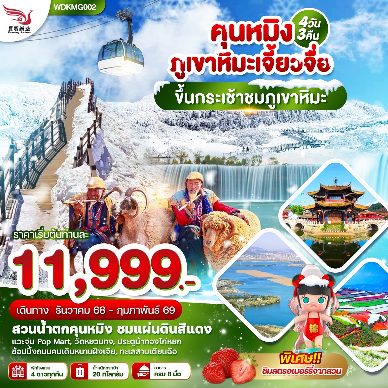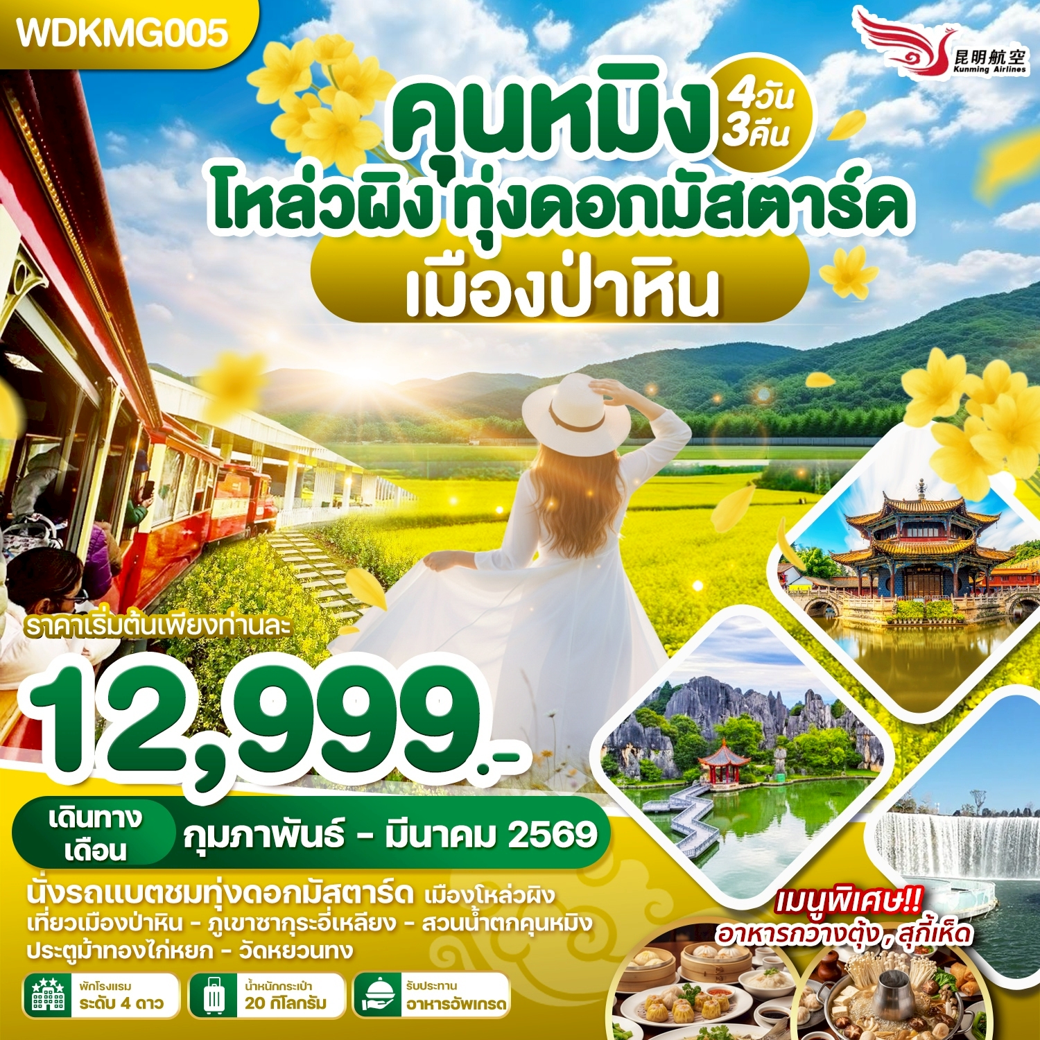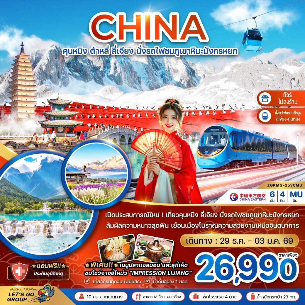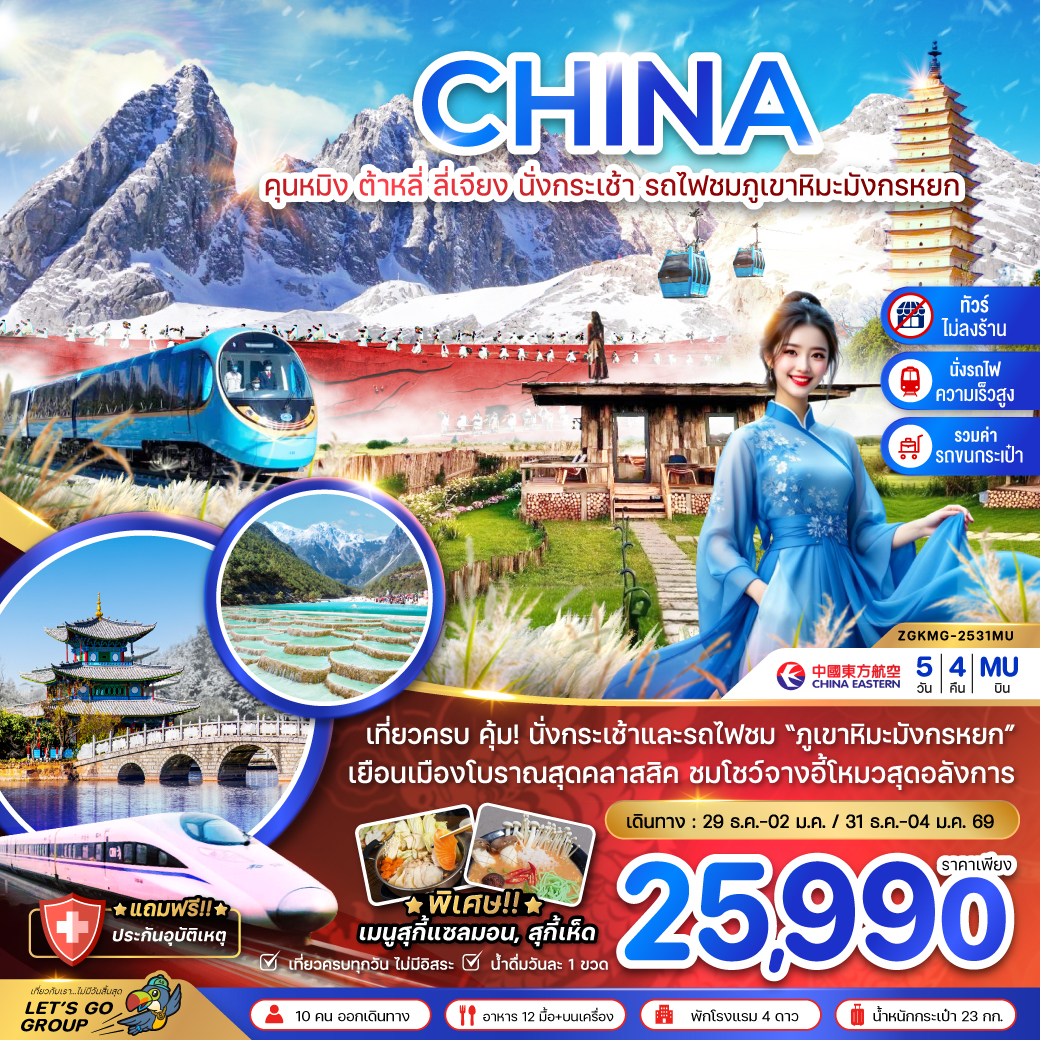 ทัวร์คุนหมิง ต้าหลี่ ลี่เจียง แชงกรีล่า นั่งรถไฟชมวิวหิมะมังกรหยก ช่องแคบเสือกระโดด 6 วัน 5 คืน นั่งรถไฟความเร็วสูง (ทัวร์ไม่ลงร้านช้อป)