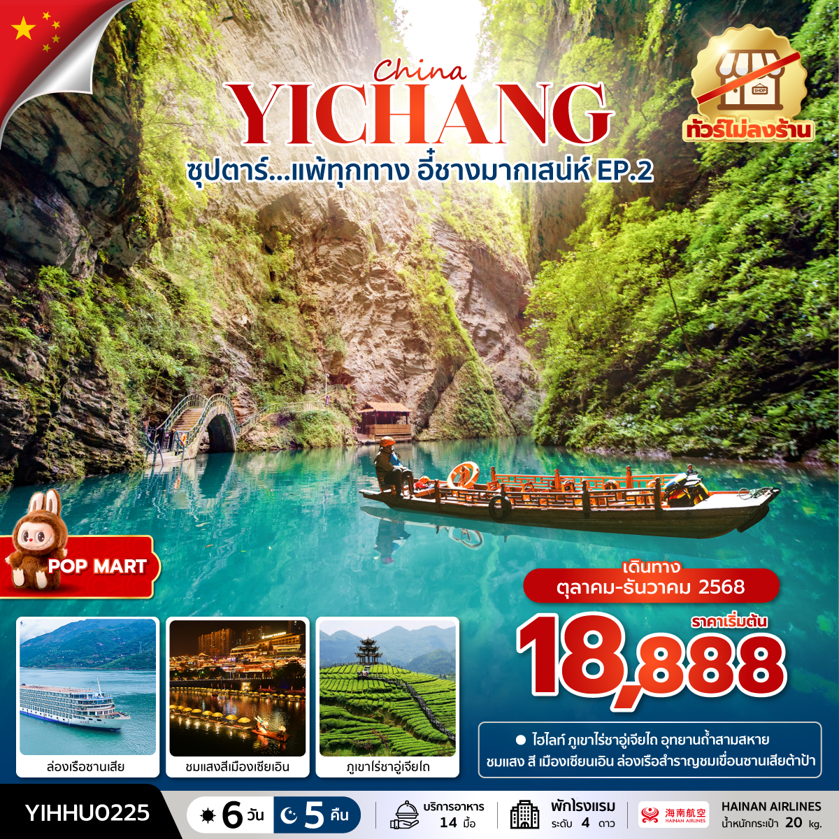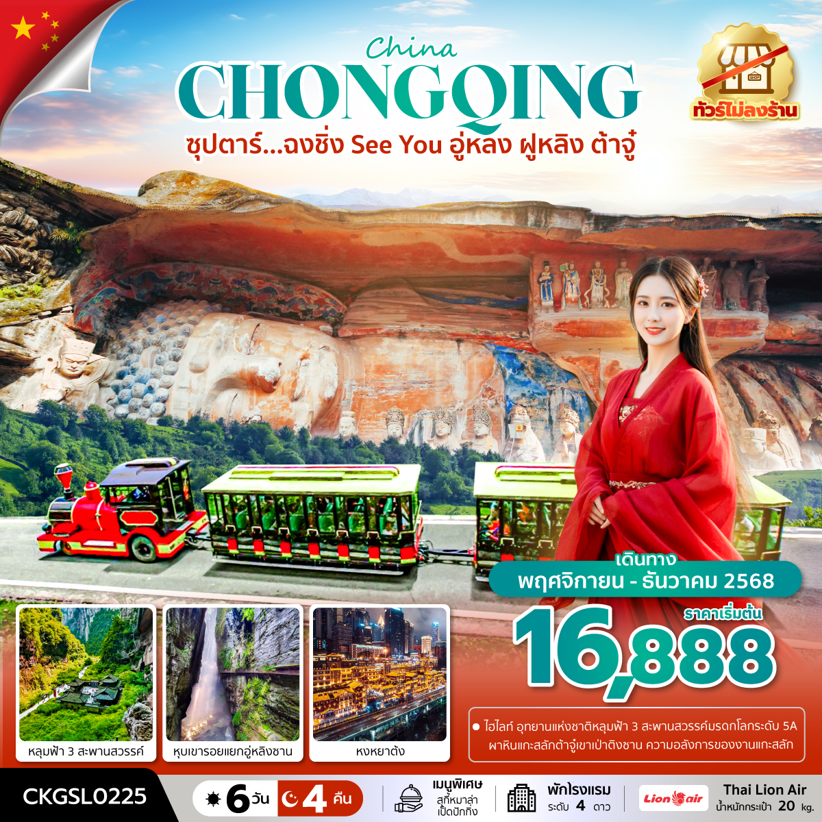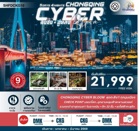 ทัวร์หยีชาง ฉงชิ่ง ล่องเรือแม่น้ำซีเกียง เขื่อนสามผา มรดกโลกพระหินแกะสลัก รถไฟฟ้าทะลุตึก 6 วัน 5 คืน