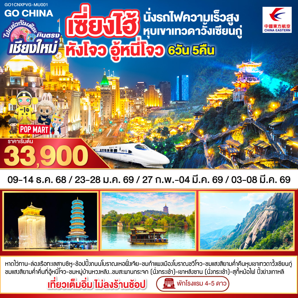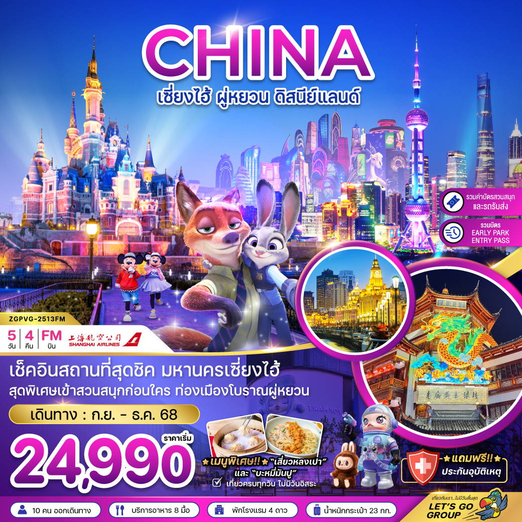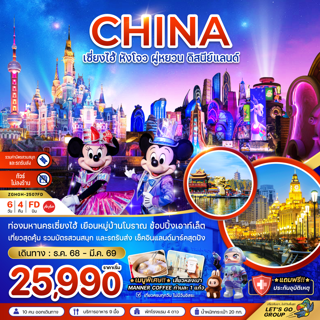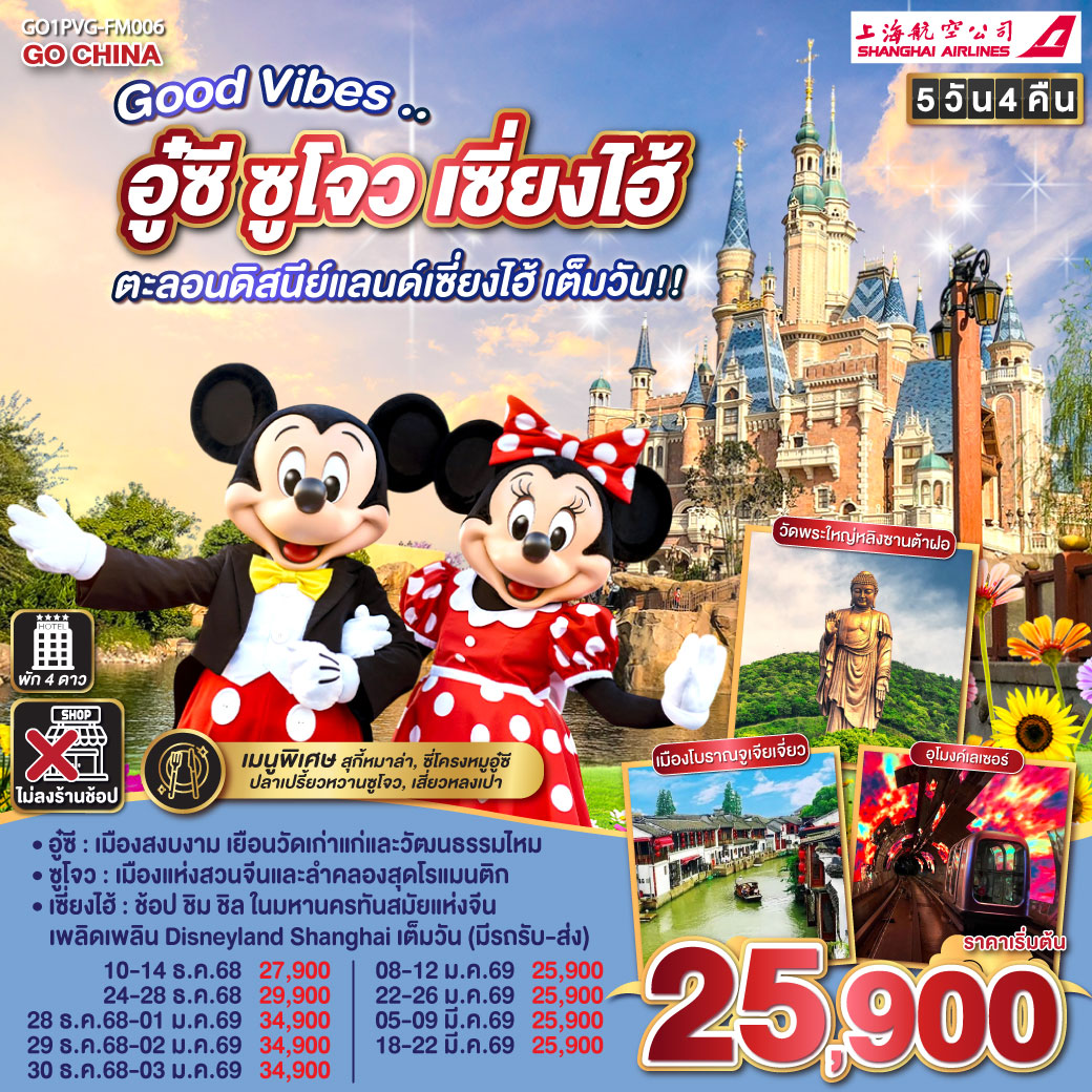 ทัวร์เซี่ยงไฮ้ หังโจว ปีใหม่ 2569 เมืองโบราณผู่หยวน สวนสนุกดิสนีย์แลนด์ 6 วัน 4 คืน (รวมบัตรสวนสนุกรถรับส่ง-ไม่ลงร้าน)