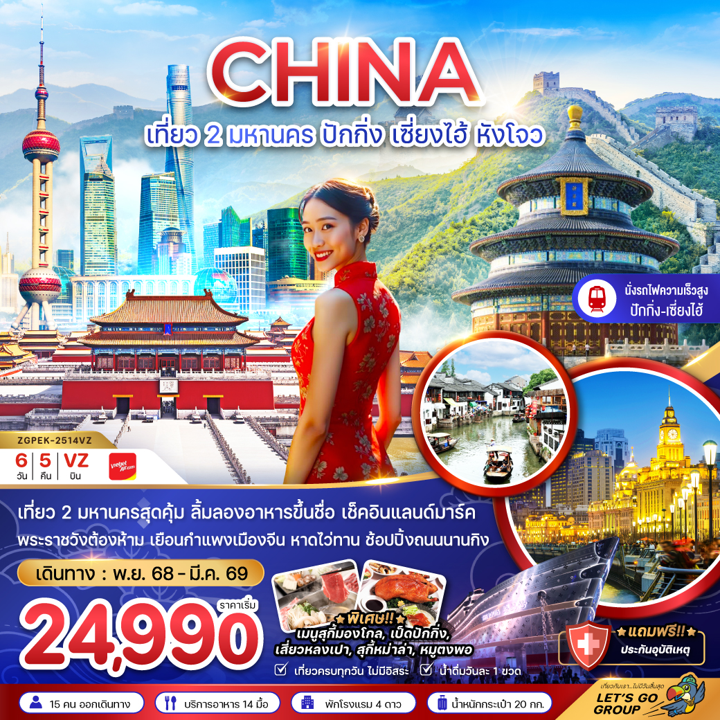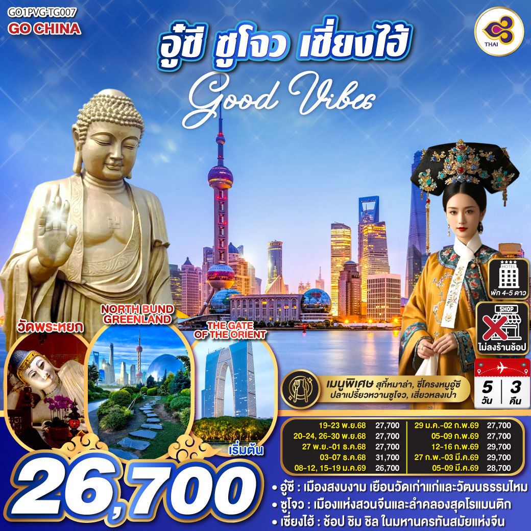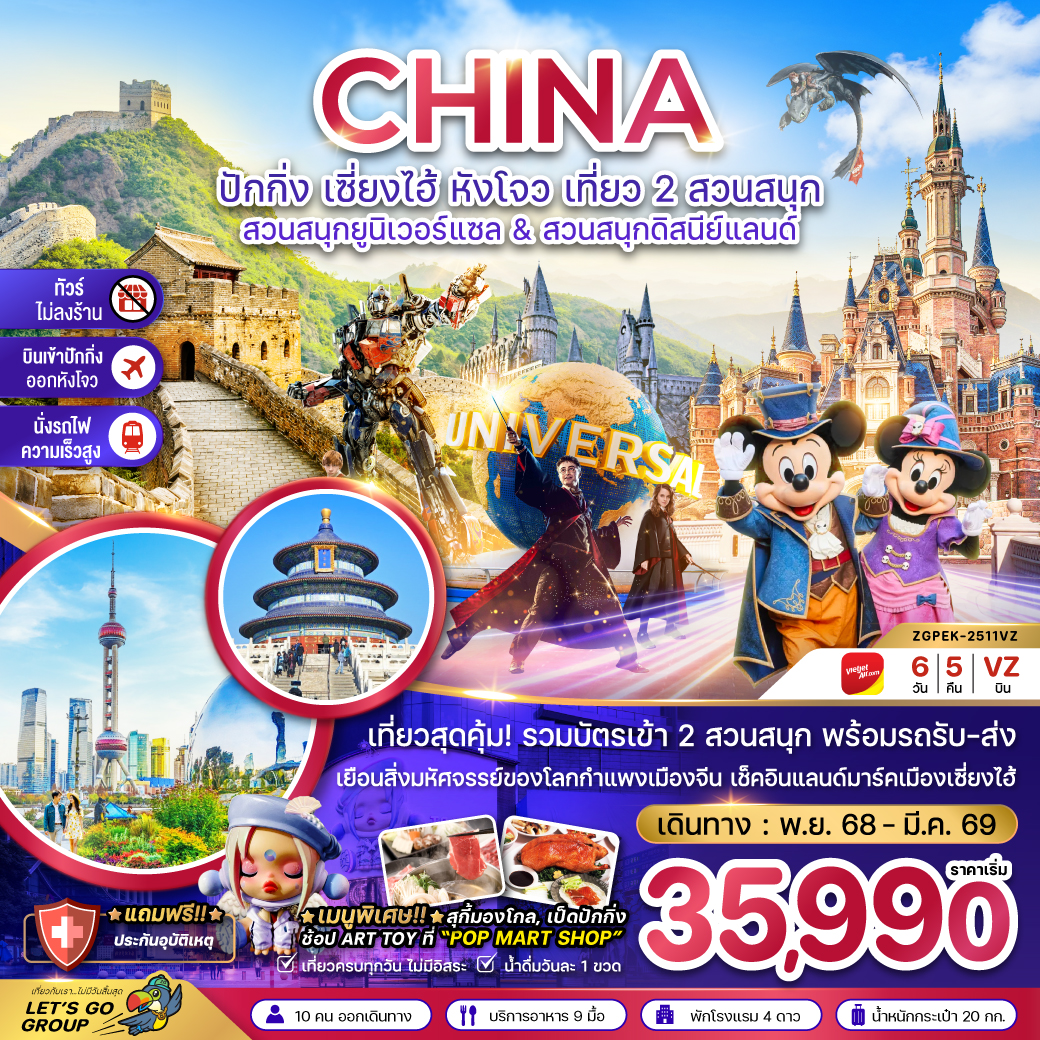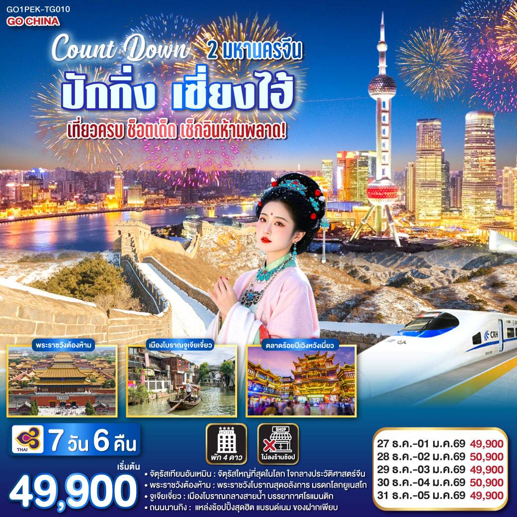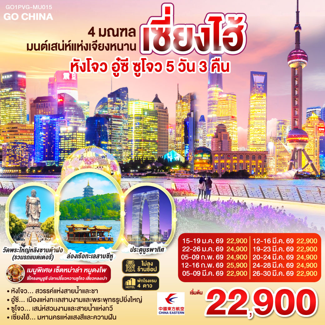 ทัวร์เซี่ยงไฮ้ หังโจว ปีใหม่ 2569 เมืองโบราณผู่หยวน สวนสนุกดิสนีย์แลนด์ 6 วัน 4 คืน (รวมบัตรสวนสนุกรถรับส่ง-ไม่ลงร้าน)