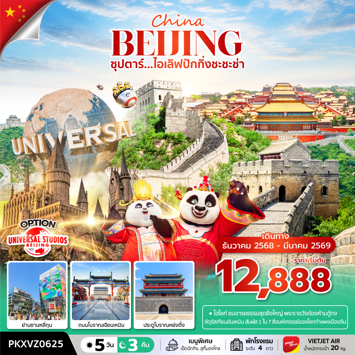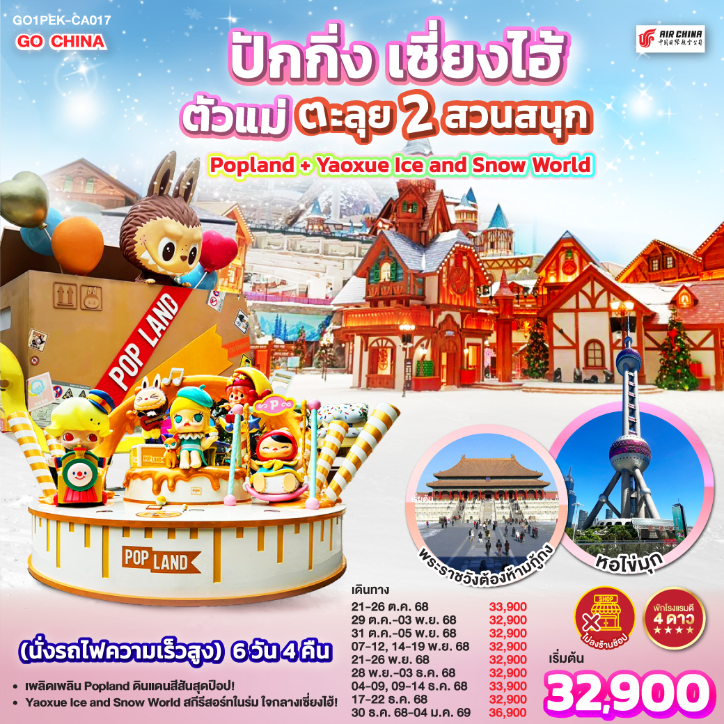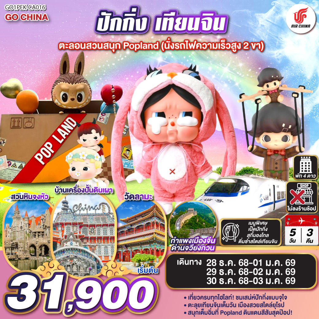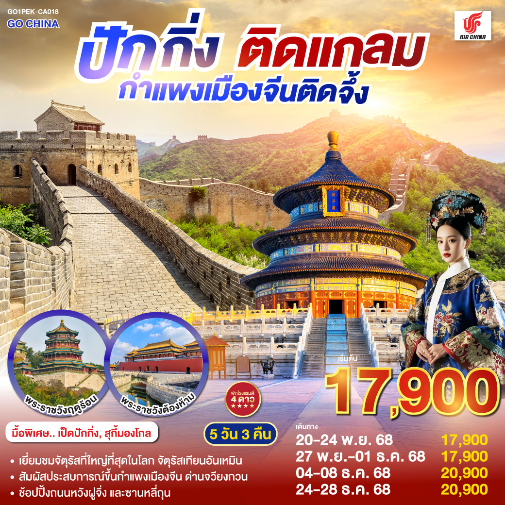 ทัวร์ปักกิ่ง กำแพงเมืองจีน จัตุรัสเทียนอันเหมิน เมืองใต้ดินเหอผิงจวี๋ 5 วัน 3 คืน โดยสายการบิน Air China (CA)
