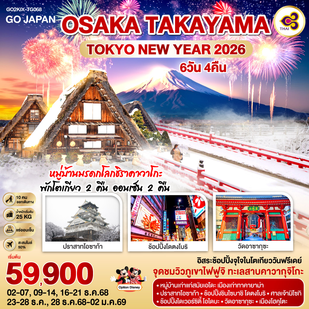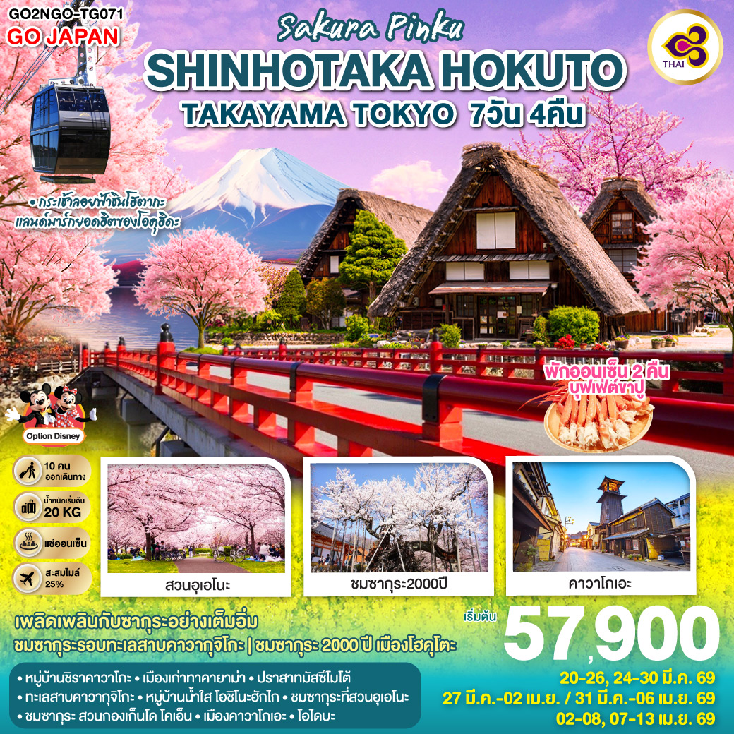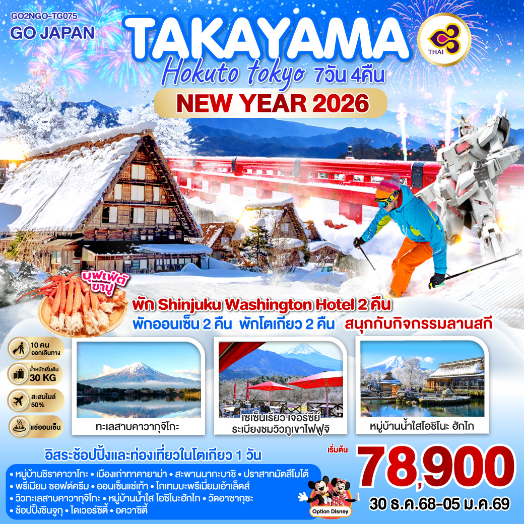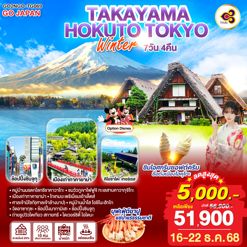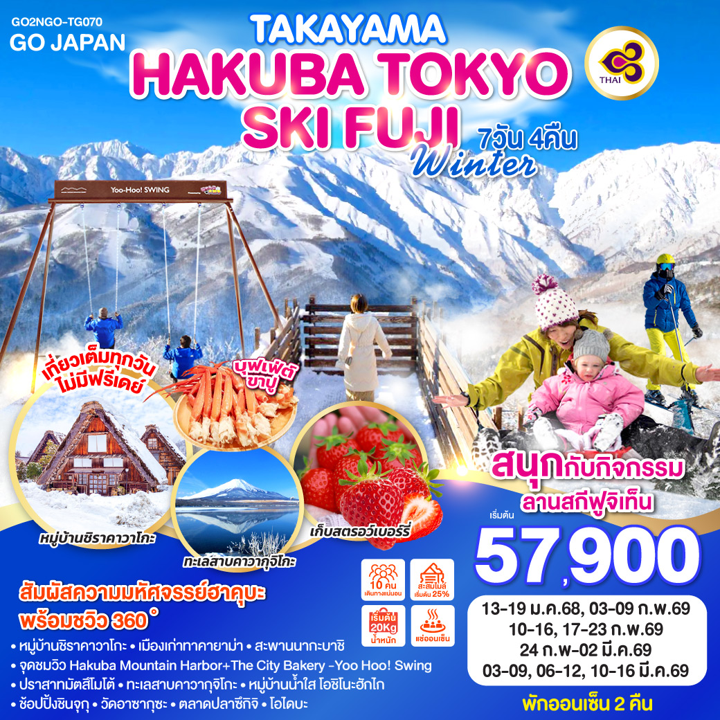 ทัวร์ญี่ปุ่น โตเกียว สนุกกับกิจกรรมฤดูหนาว กาล่า ยูซาว่า วัดเฮรินจิ หมู่บ้านน้ำใสโอชิโนะฮัคไค ฟูจิ 5 วัน 3 คืน (พักออนเซ็น 2 คืน)