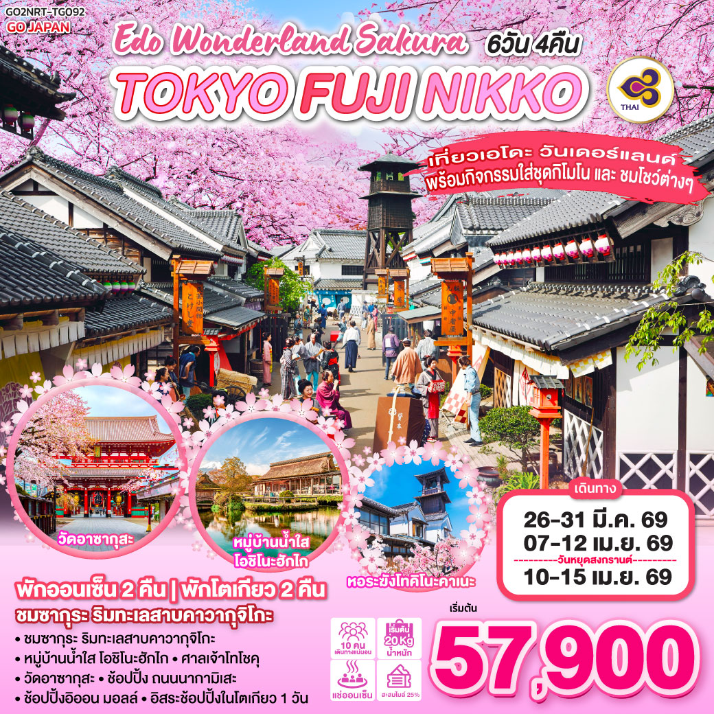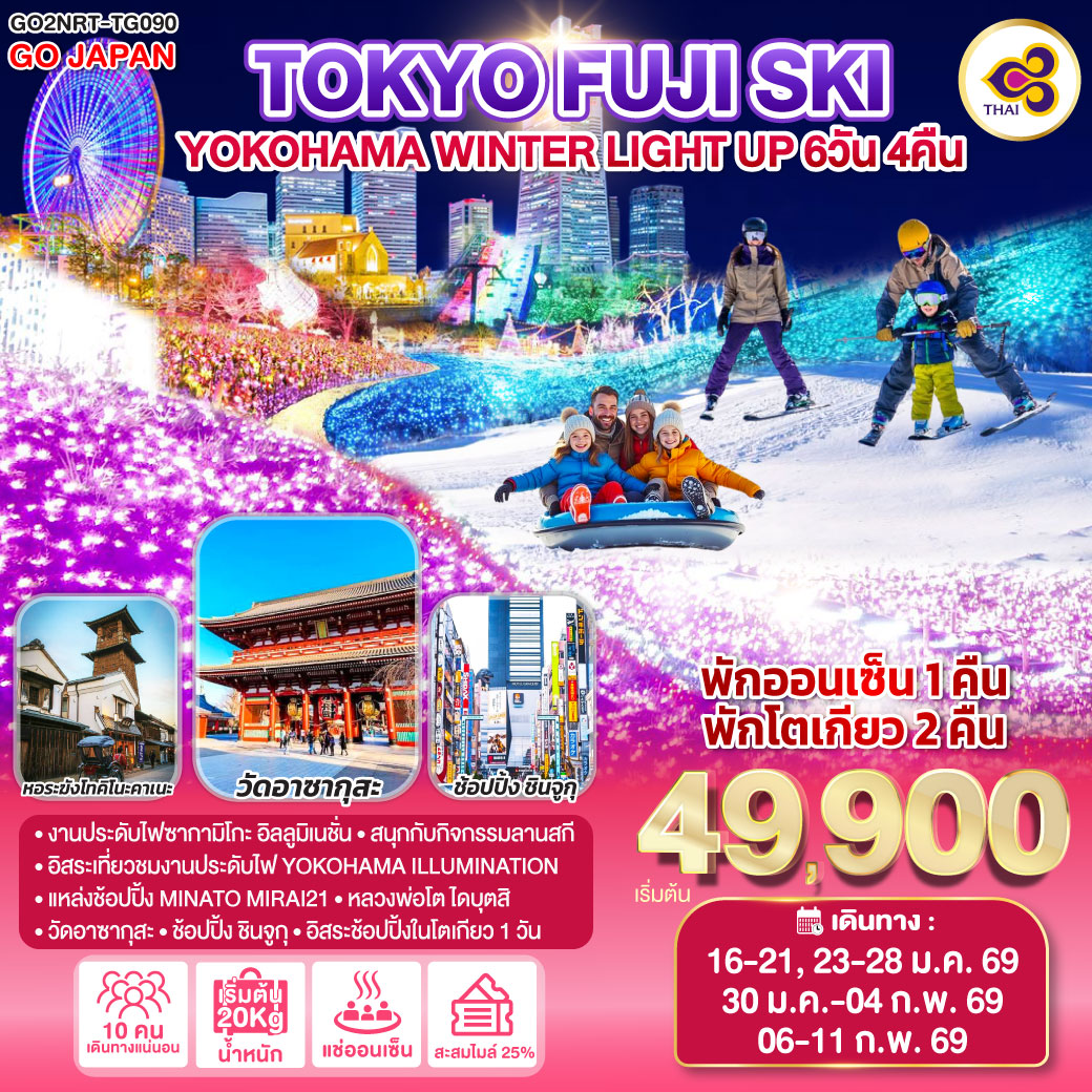 ทัวร์ญี่ปุ่น โตเกียว สนุกกับกิจกรรมทางหิมะ ฟูจิเท็น สักการะวัดอาซากุสะ ชมวิวฟูจิ สวนโออิชิปาร์ค 5 วัน 3 คืน (พักฟูจิออนเซ็น 1 คืน - เที่ยวอิสระ 1 วัน)