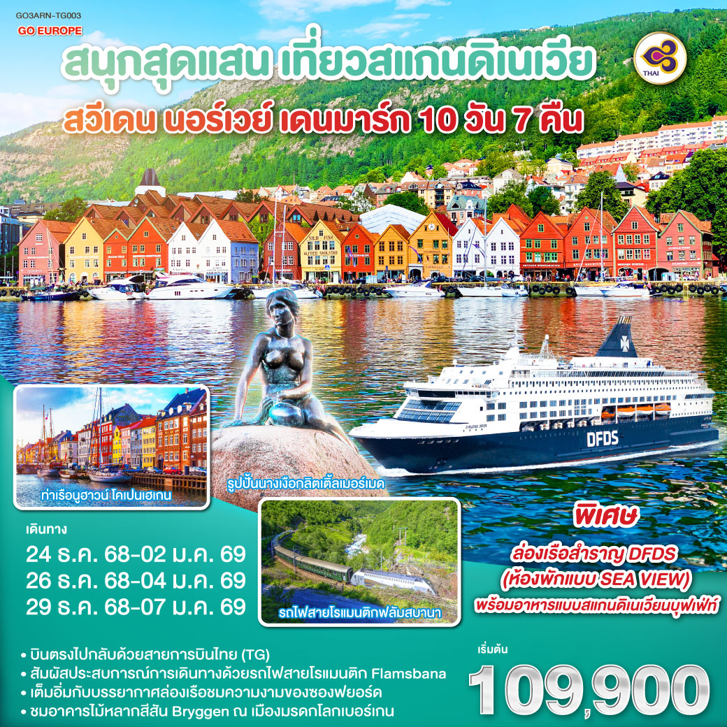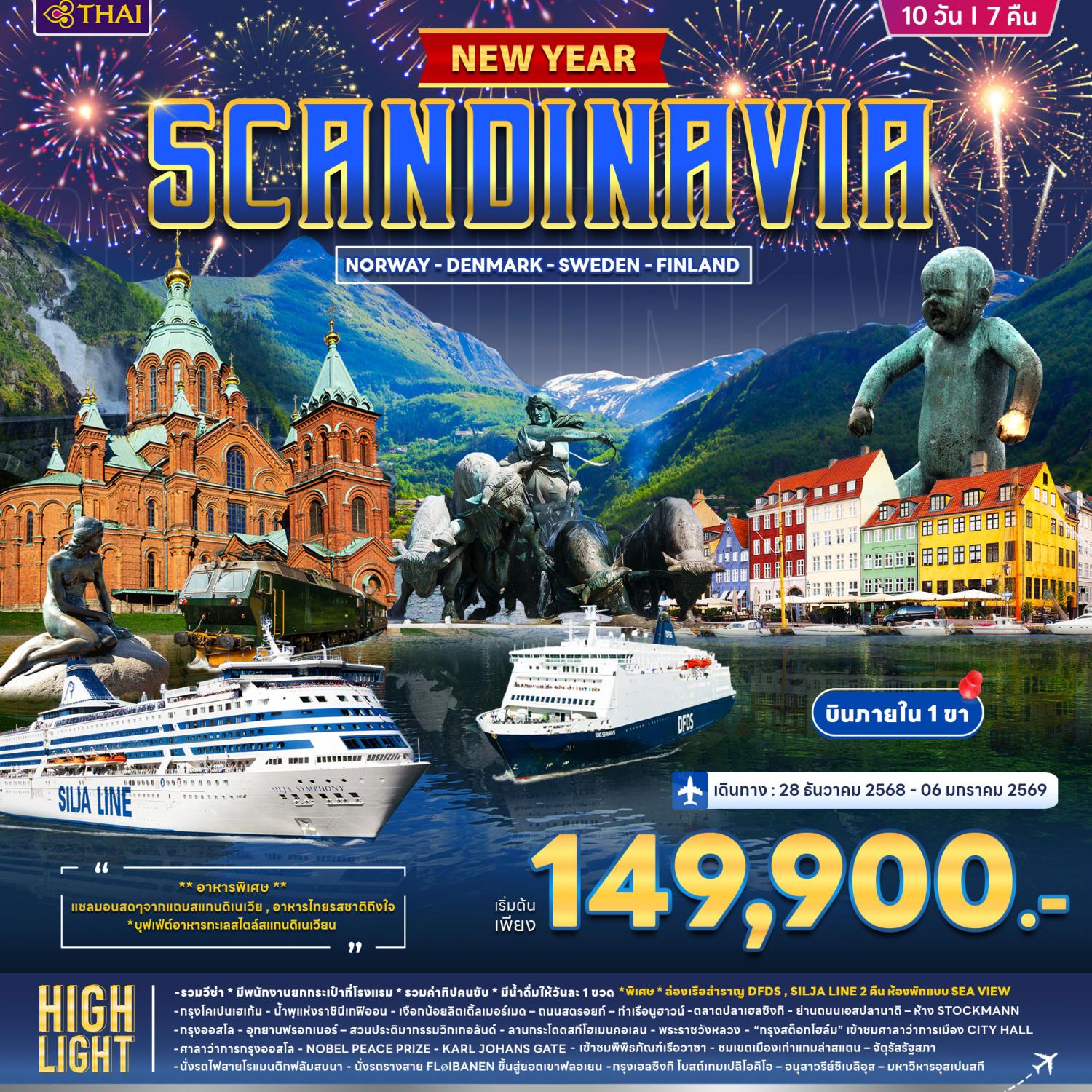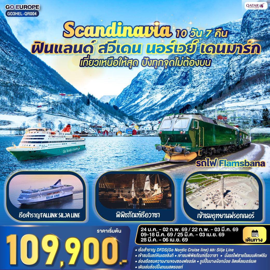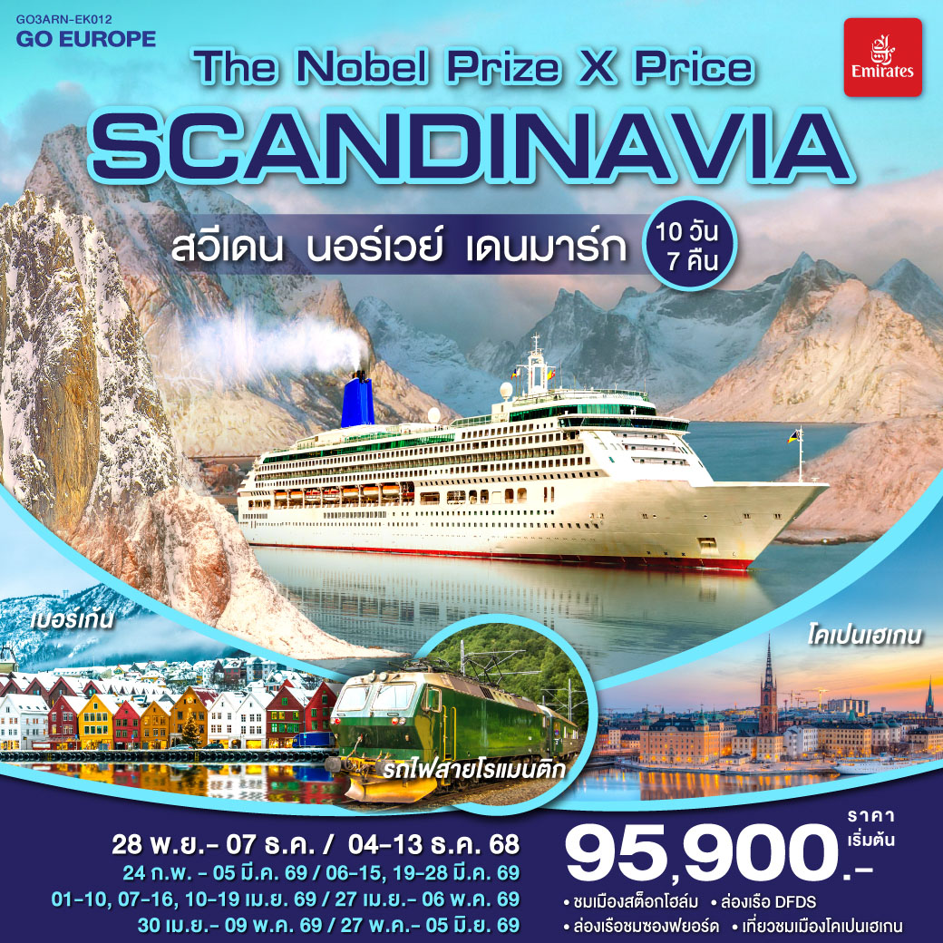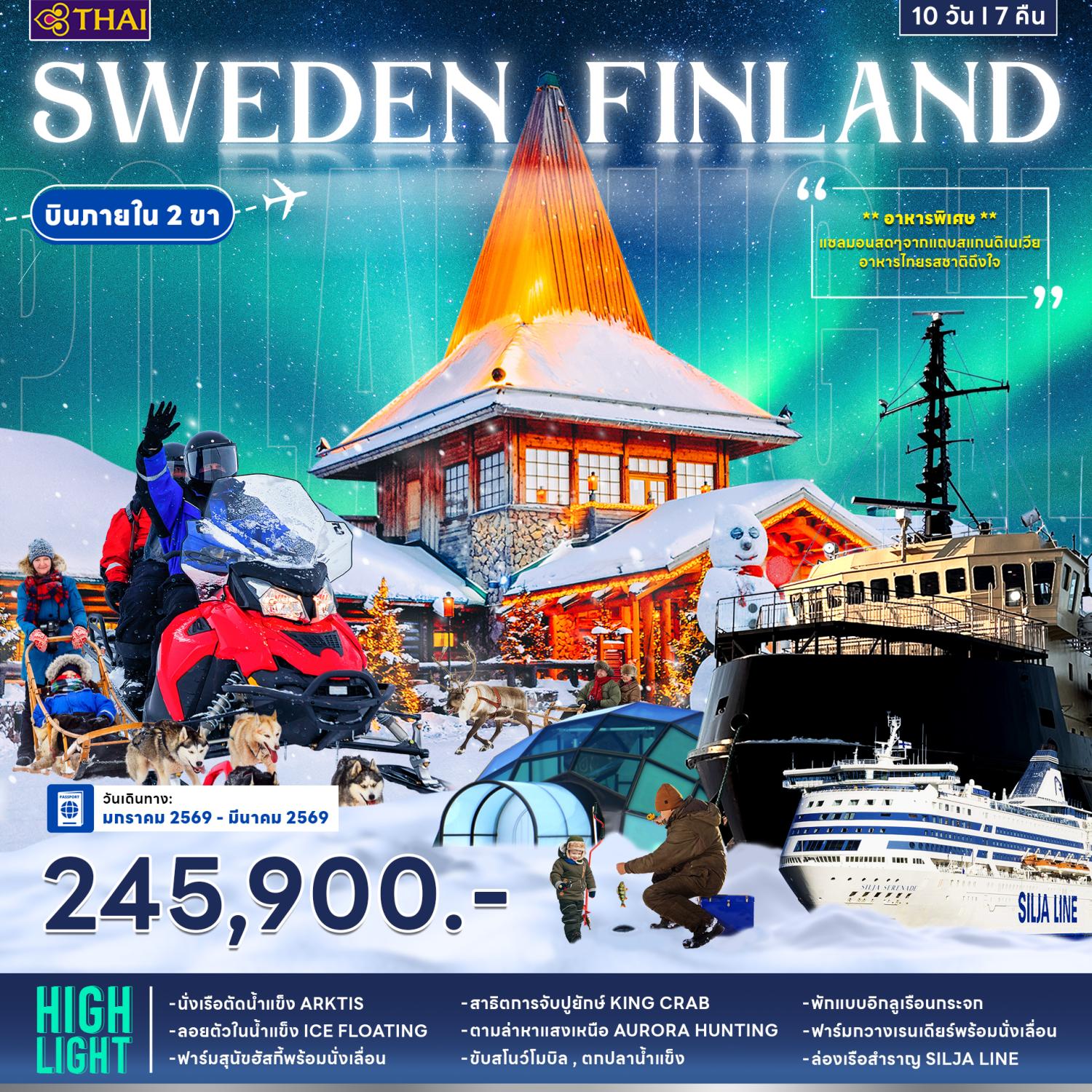 ทัวร์สวีเดน นอร์เวย์ ปีใหม่ 2026 ล่าแสงเหนือ พิชิตแหลมเหนือนอร์ดเคป ล่องเรือ Ribboat จับปูยักษ์ 11 วัน 8 คืน พักบนเรือสำราญ HAVILA ห้องพักวิวทะเล ดินเนอร์ล่าแสงเหนือ Northern Light Dinner บนยอดเขานัวเลีย (บินการบินไทย)