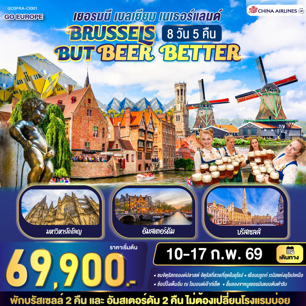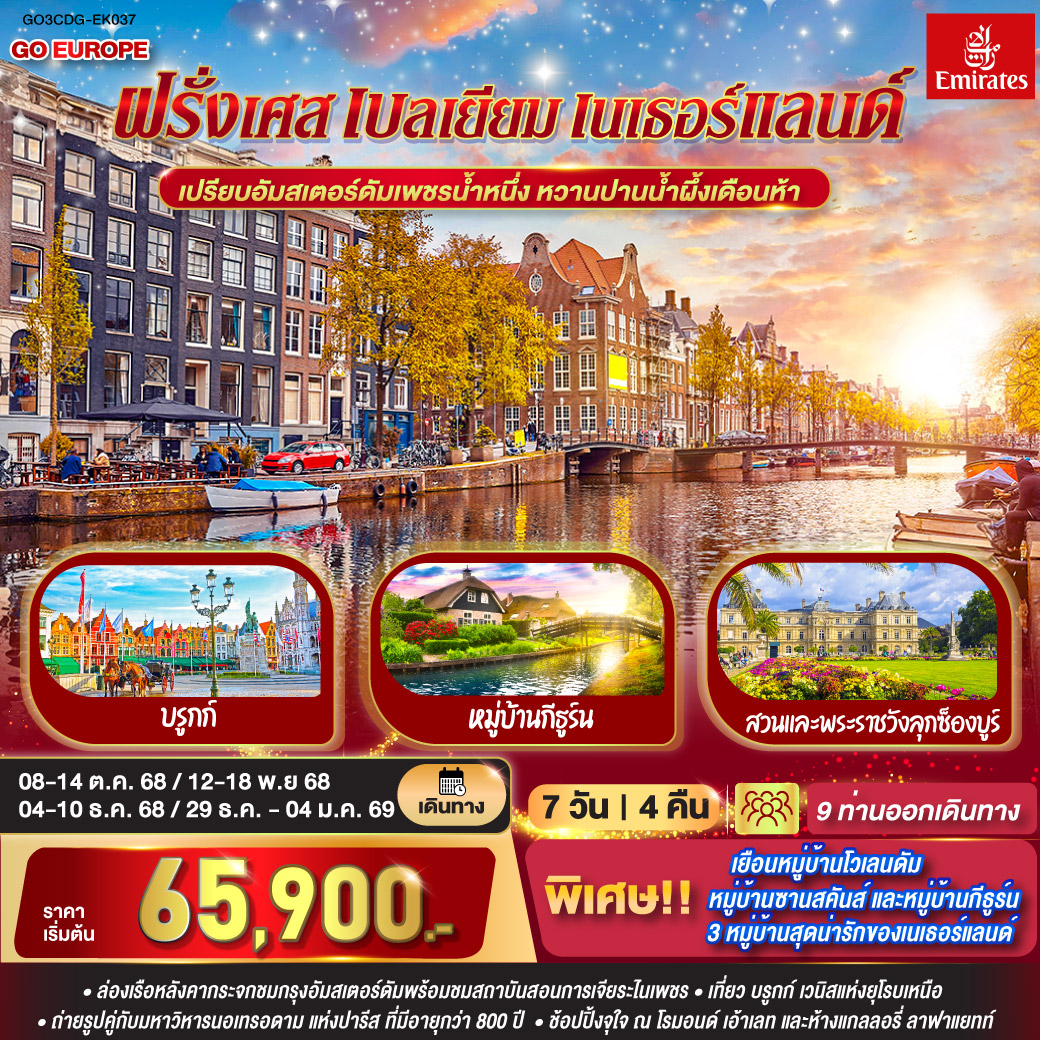 ทัวร์ยุโรป เบเนลักซ์ ปีใหม่ 2568 เยอรมัน เนเธอร์แลนด์ เบลเยี่ยม ฝรั่งเศส มหาวิหารแห่งโคโลญจ์ อัมสเตอร์ดัม พิพิธภัณฑ์ลูฟวร์ 8 วัน 6 คืน (สัมผัสกลิ่นอายตลาดคริสต์มาส)