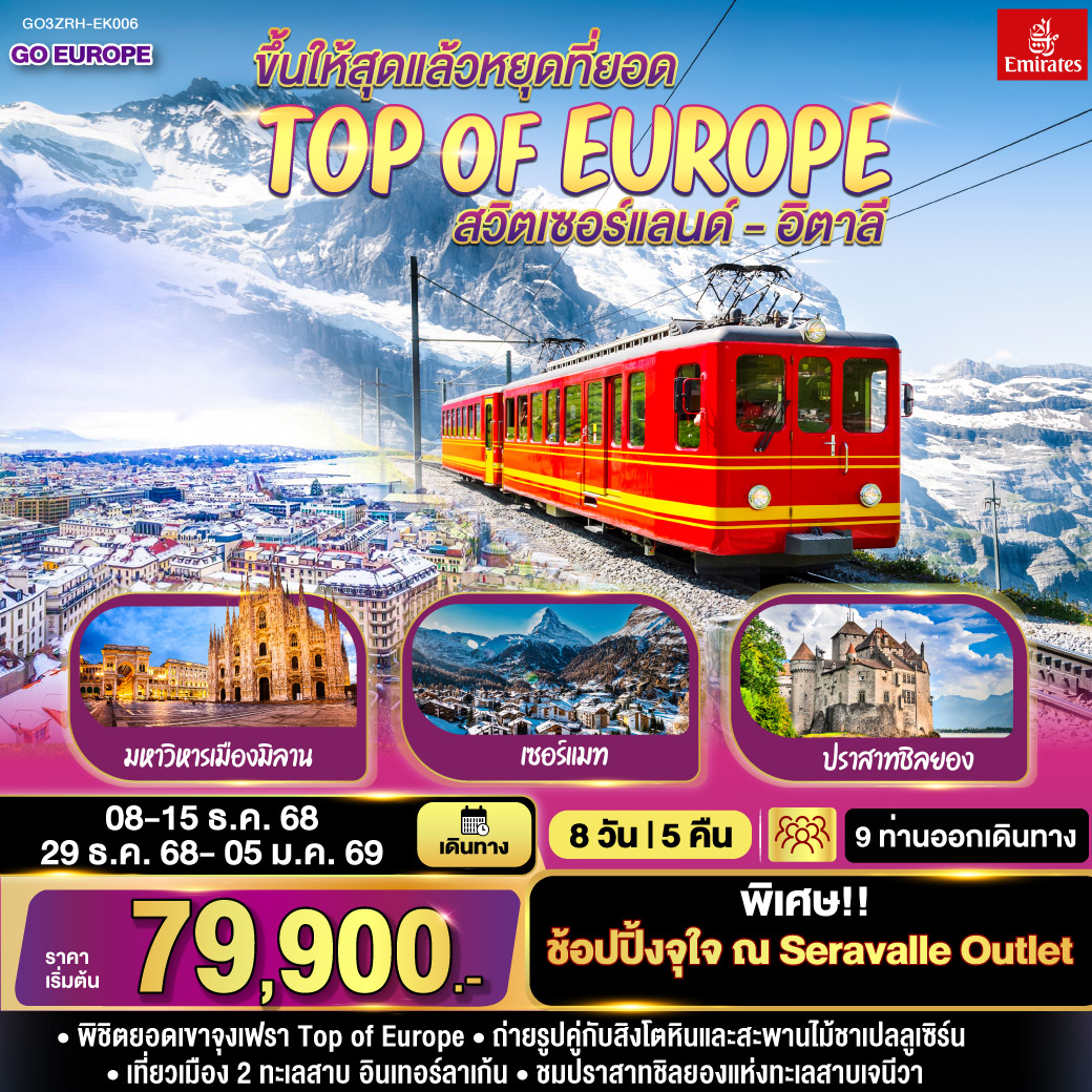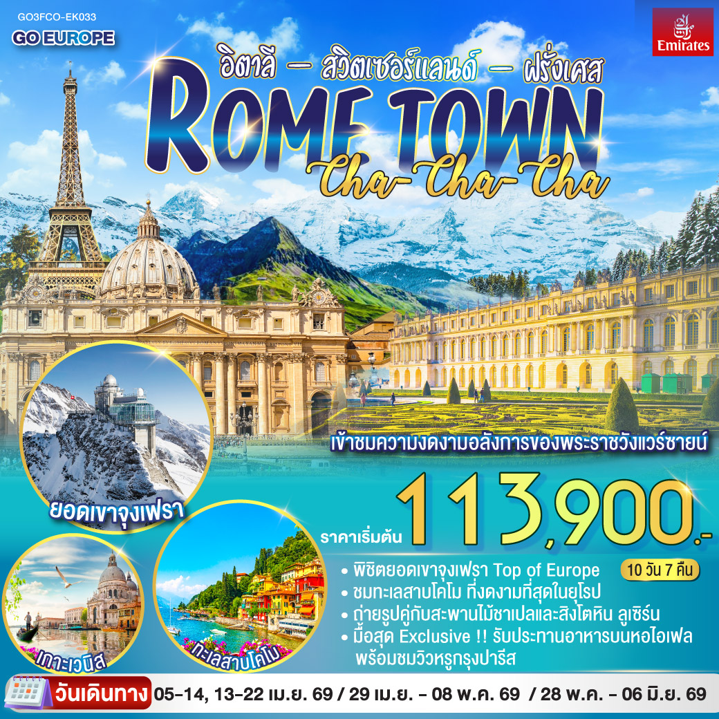 ทัวร์ยุโรป ปีใหม่ 2026 ฝรั่งเศส สวิส อิตาลี พระราชวังแวร์ซายส์ ยอดเขาทิตลิส 8 วัน 5 คืน