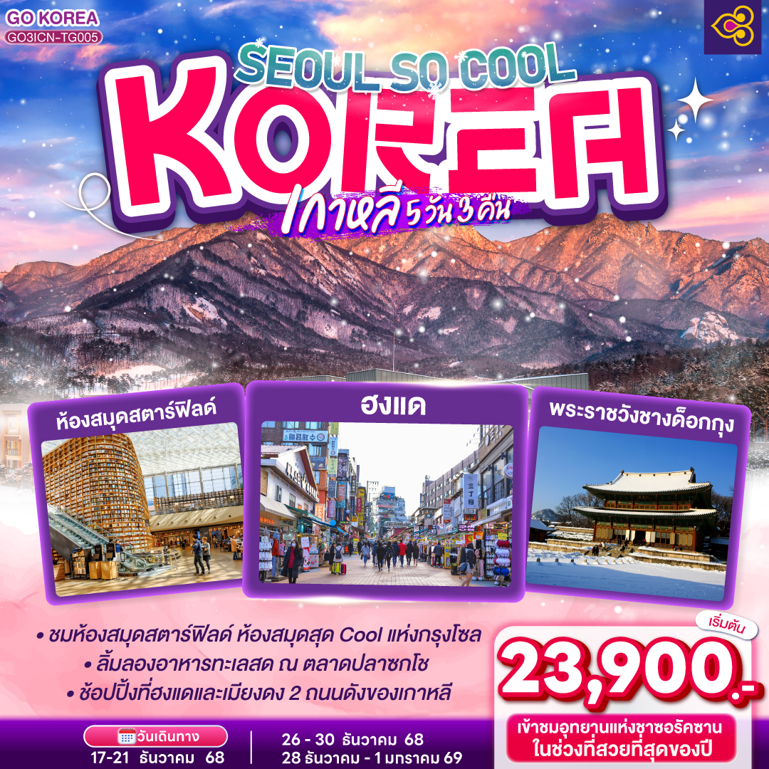 ทัวร์เกาหลี 2569 ปูซาน EDEN SKI RESORT รถไฟ SKY CAPSULE หมู่บ้านริมทะเลฮุนยออุน นั่งรถไฟทานูบีชมอุทยานแทจงแด 5 วัน 3 คืน (พิเศษพักปูซาน 3 คืน)