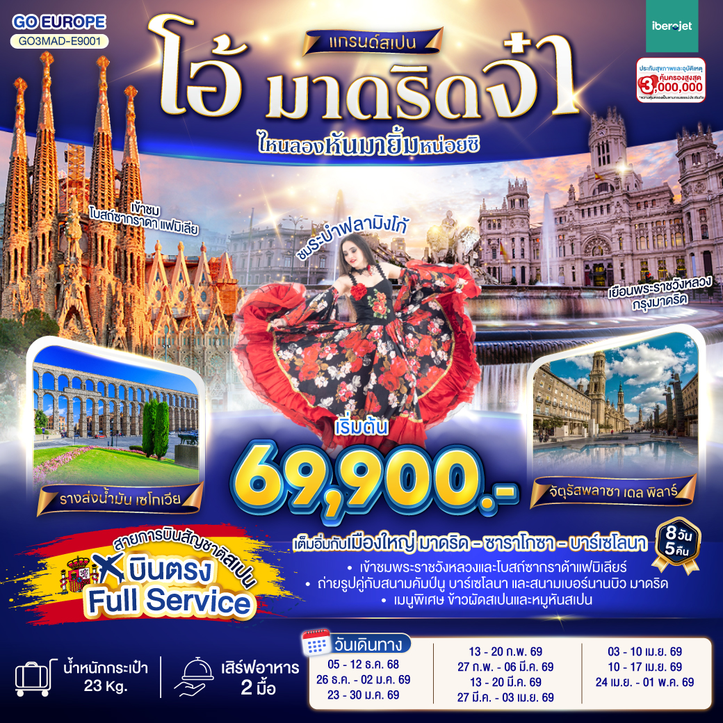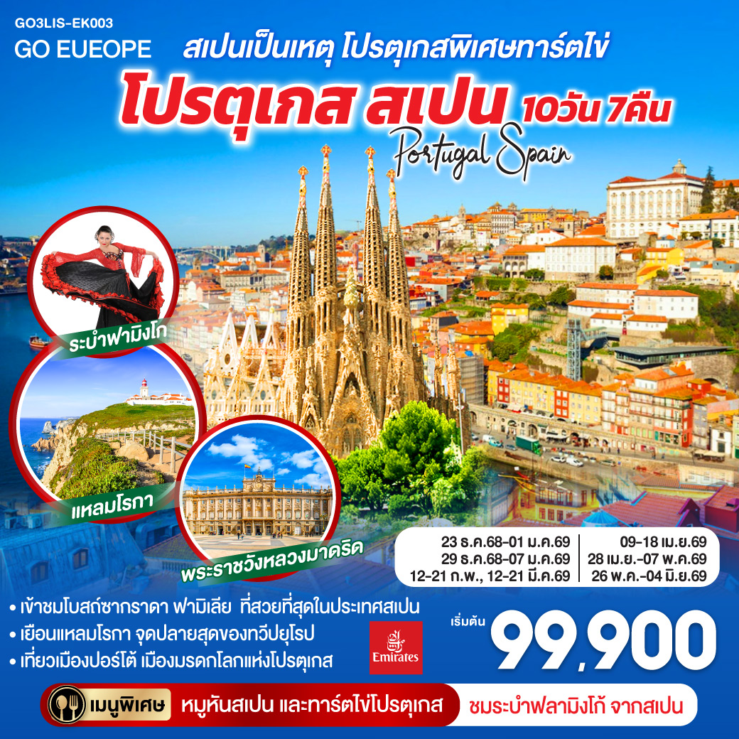 ทัวร์โปรตุเกส สเปน ปีใหม่ 2026 โบสถ์ซากราดา ฟามิเลีย เมืองปอร์โต้ เมืองมรดกโลกแห่งโปรตุเกส ระบำฟลามิงโก้ 10 วัน 7 คืน
