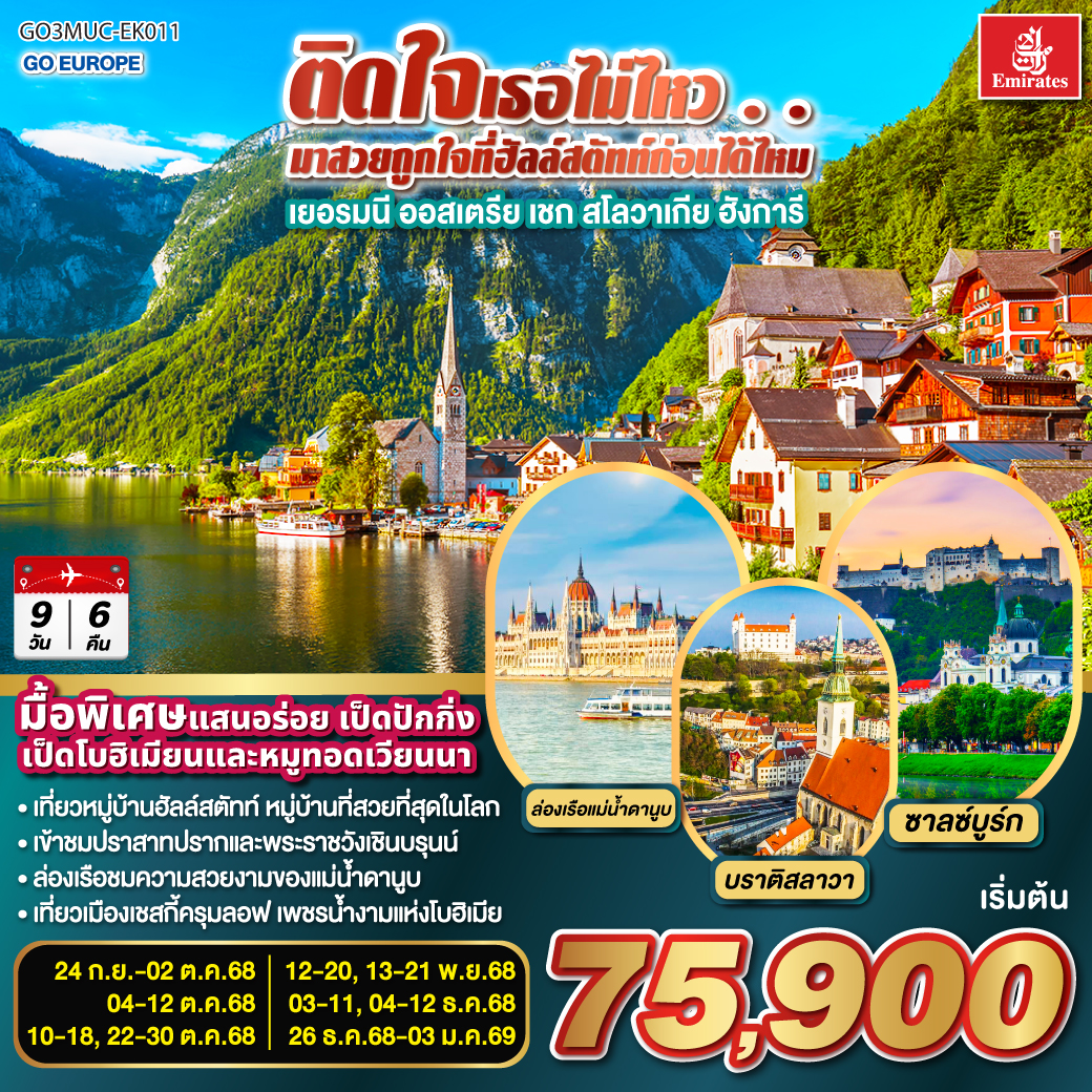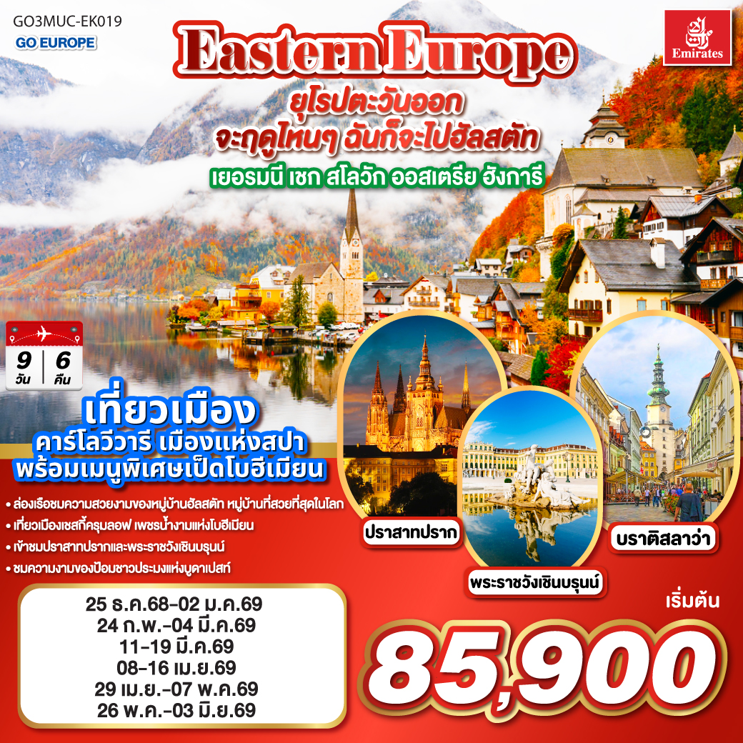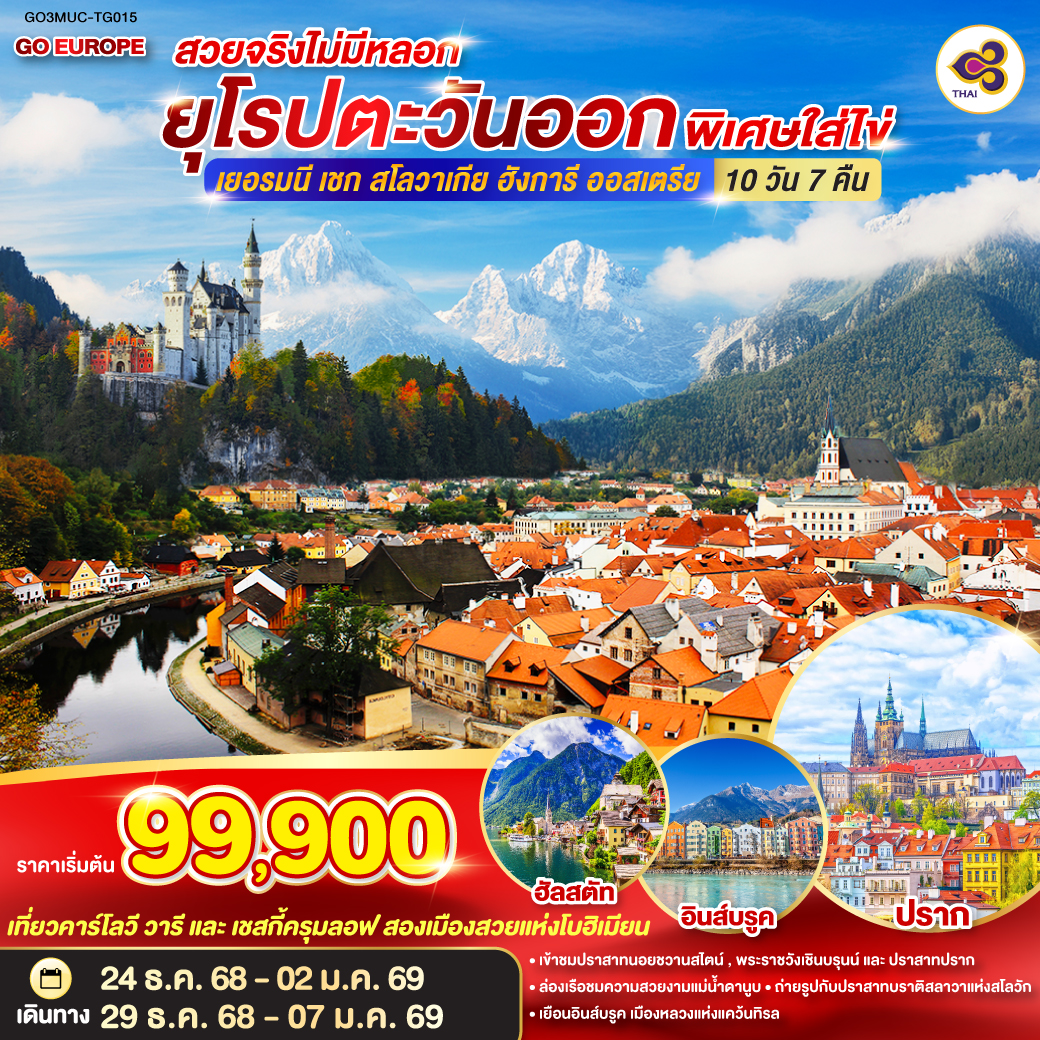 ทัวร์ยุโรปตะวันออก ปีใหม่ 2026 เยอรมนี เชก สโลวาเกีย ออสเตรีย ฮังการี 9 วัน 6 คืน ล่องเรือชมหมู่บ้านฮัลสตัท เมืองคาร์โลวีวารี เมืองแห่งสปา