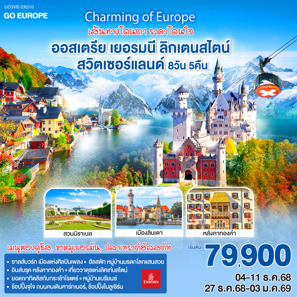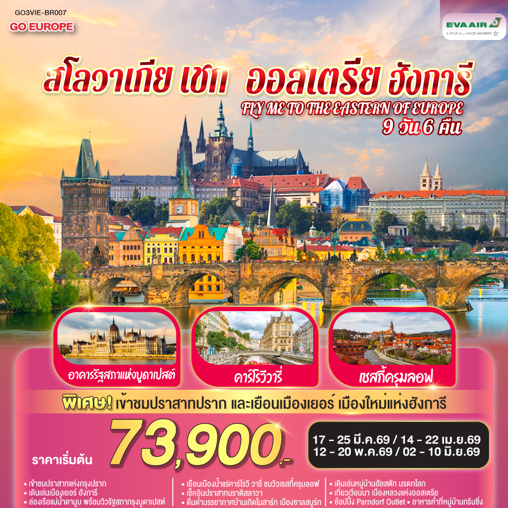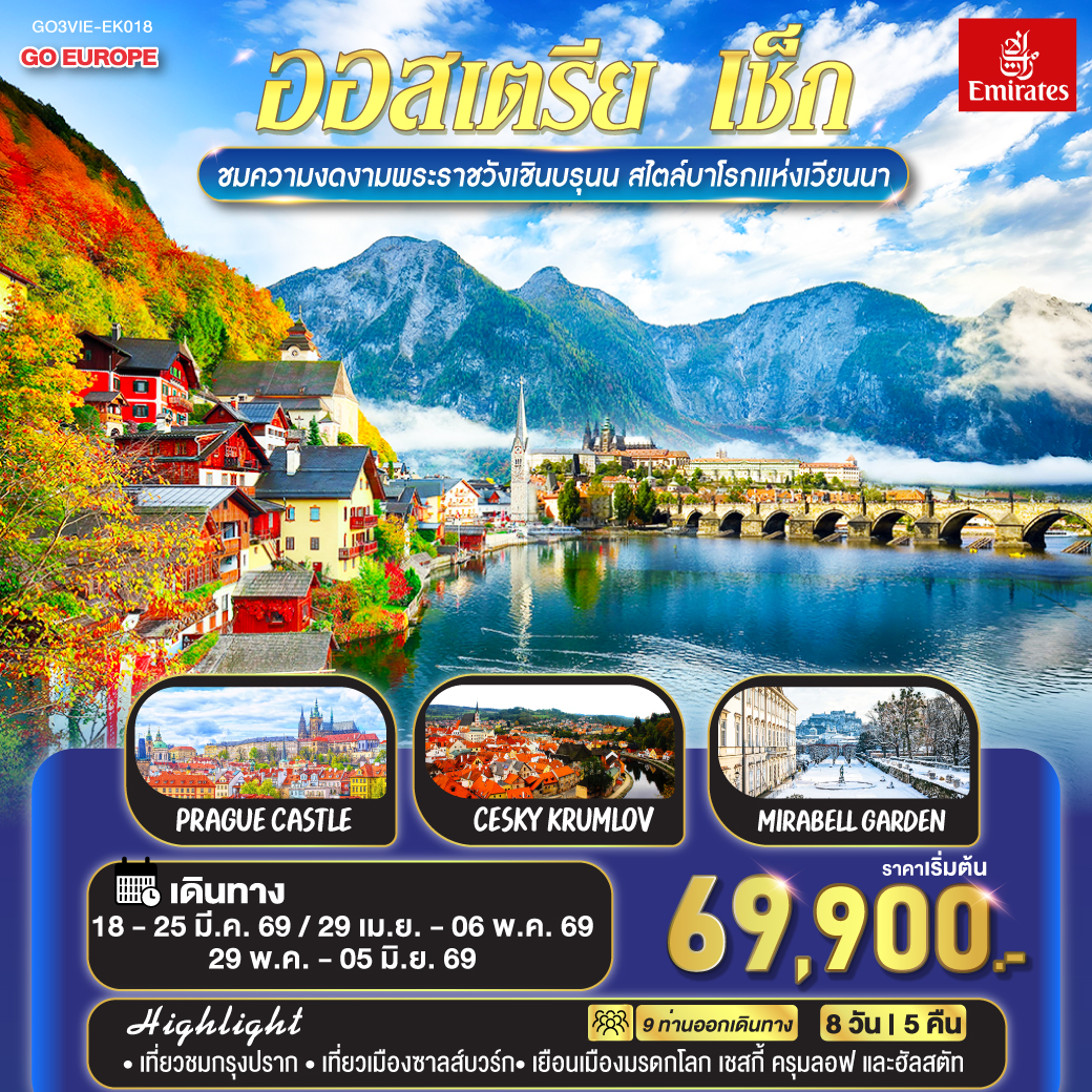 ทัวร์ยุโรปตะวันออก ปีใหม่ 2026 เยอรมนี เชก สโลวาเกีย ออสเตรีย ฮังการี 9 วัน 6 คืน ล่องเรือชมหมู่บ้านฮัลสตัท เมืองคาร์โลวีวารี เมืองแห่งสปา