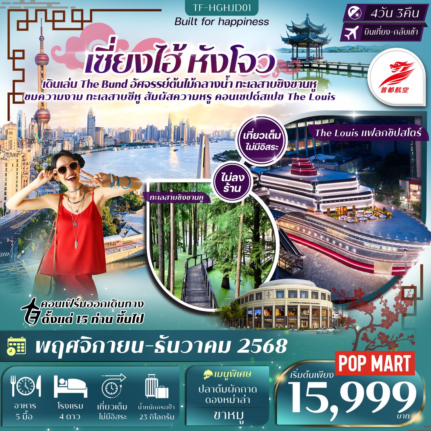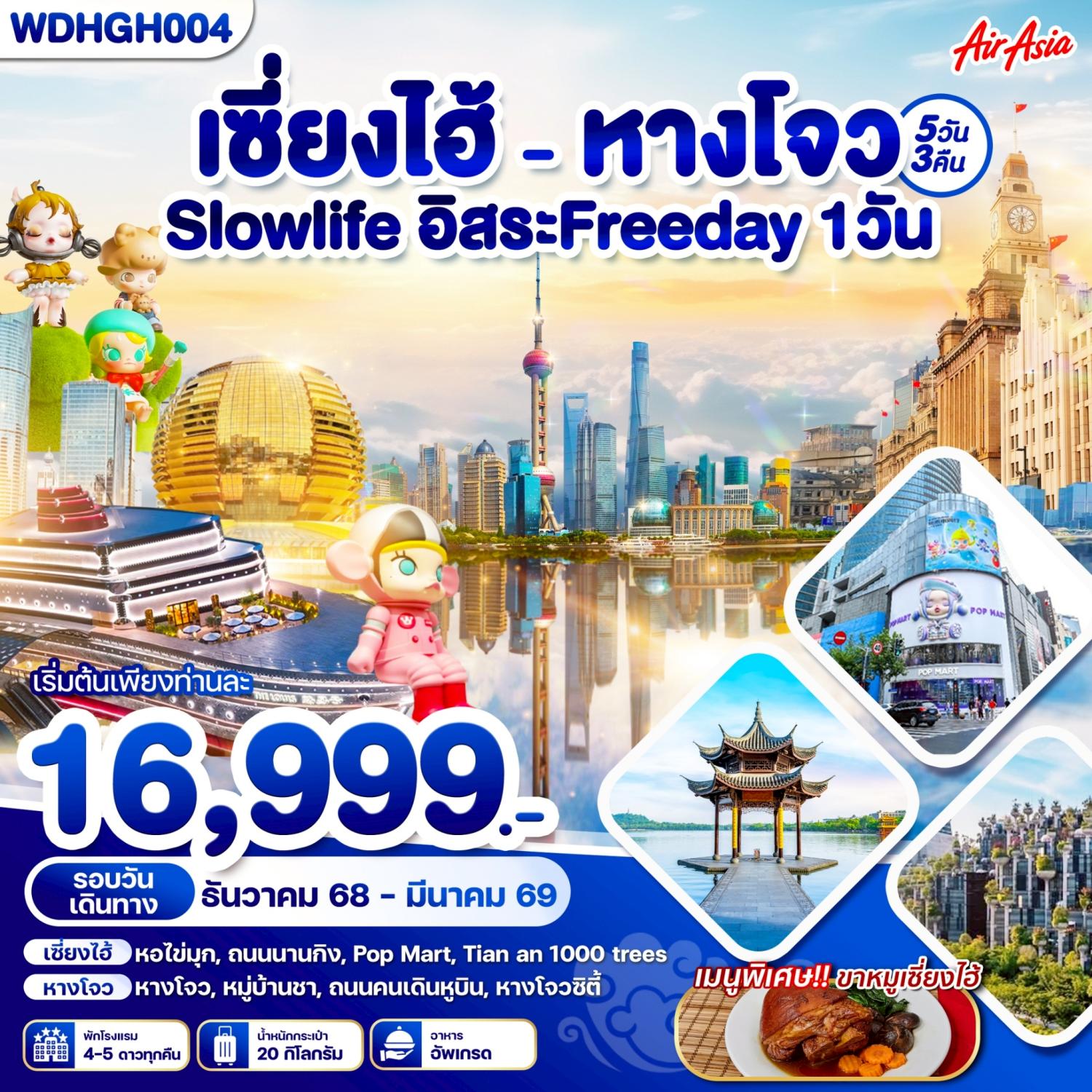 ทัวร์เซี่ยงไฮ้ หางโจว ปีใหม่ 2569 ล่องเรือทะเลสาบซีหู สวนสนุกดิสนีย์แลนด์ ไอซ์แอนสโนวเวิลด์ สวนสนุกน้ำแข็งหิมะ 5 วัน 4 คืน (ทัวร์ไม่ลงร้านช้อป) พัก Crowne Plaza Snow World Hotel ระดับ 5 ดาว 1 คืน