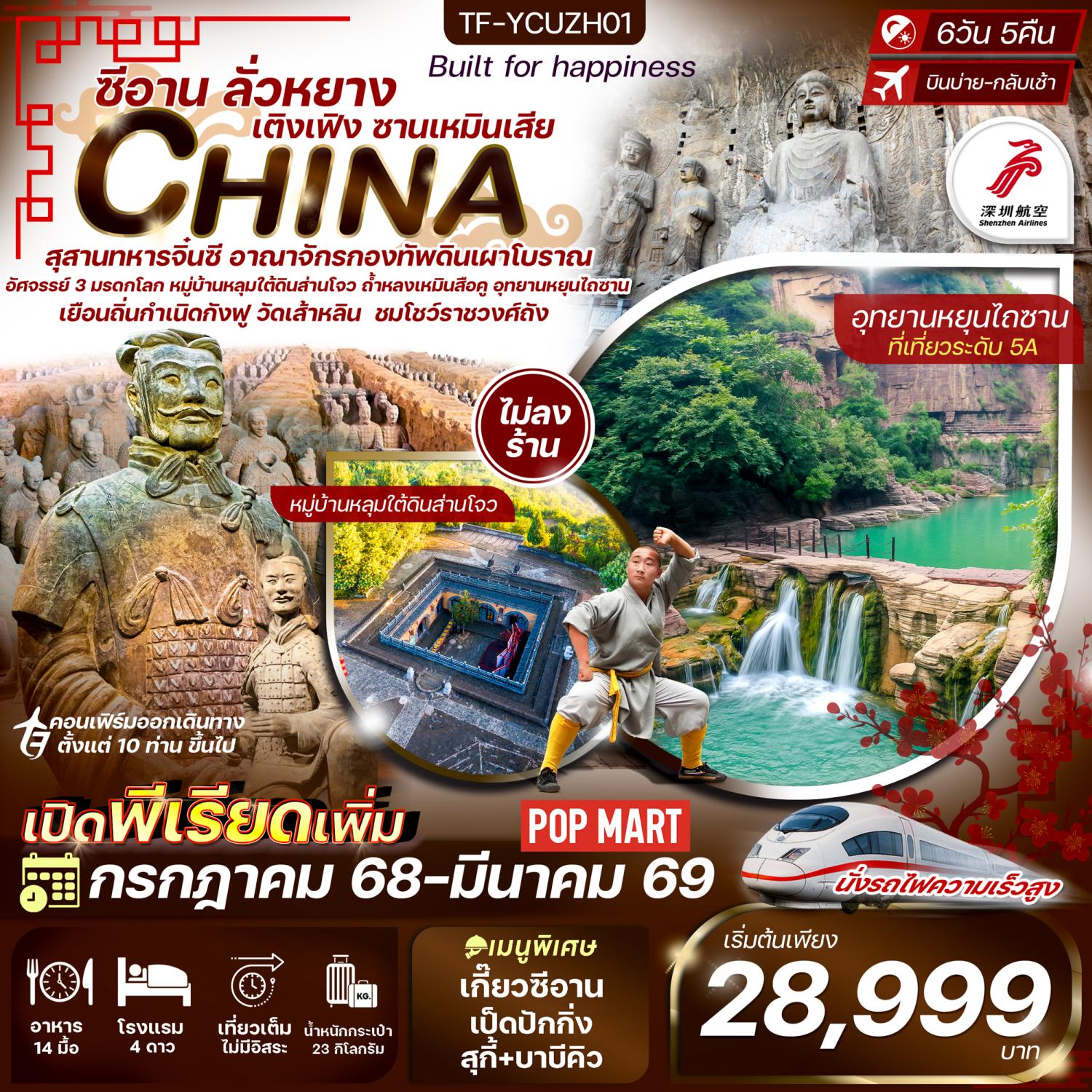 ทัวร์ซีอาน 2569 สุสานกองทัพทหารจิ้นซีฮ่องเต้ วัดลามะ เจดีย์ห่านป่าเล็ก วัดมังกรหลับ ถนนโบราณซูหยวนเหมิน 5 วัน 3 คืน (ทัวร์ไม่ลงร้านช้อป) พักโรงแรมระดับ 4 ดาว