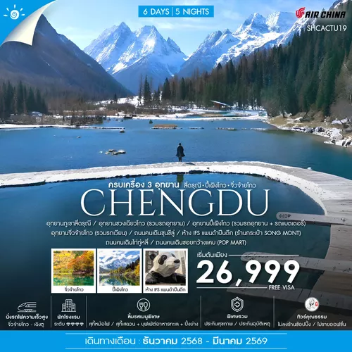ทัวร์เฉิงตู ปีใหม่ 2026 ภูเขาสี่ดรุณี อุทยานจิ่วจ้ายโกว อุทยานฯ หวงหลง หมีแพนด้ายักษ์ปีนตึก 6 วัน 5 คืน (ทัวร์ไม่ลงร้านช้อป)
