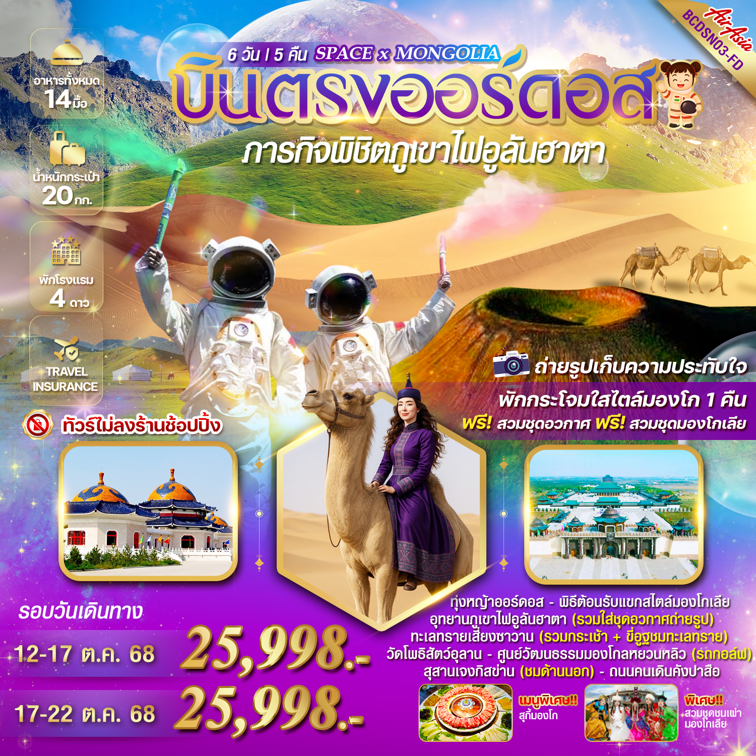 ทัวร์มองโกเลีย บินตรงออร์ดอส พิชิตภูเขาไฟอูลันฮาตา ทุ่งหญ้าออร์ดอส 6 วัน 5 คืน พักกระโจมใสไตล์มองโก 1 คืน ฟรี!สวมชุดอวกาศ (ทัวร์ไม่ลงร้านช้อปปิ้ง)