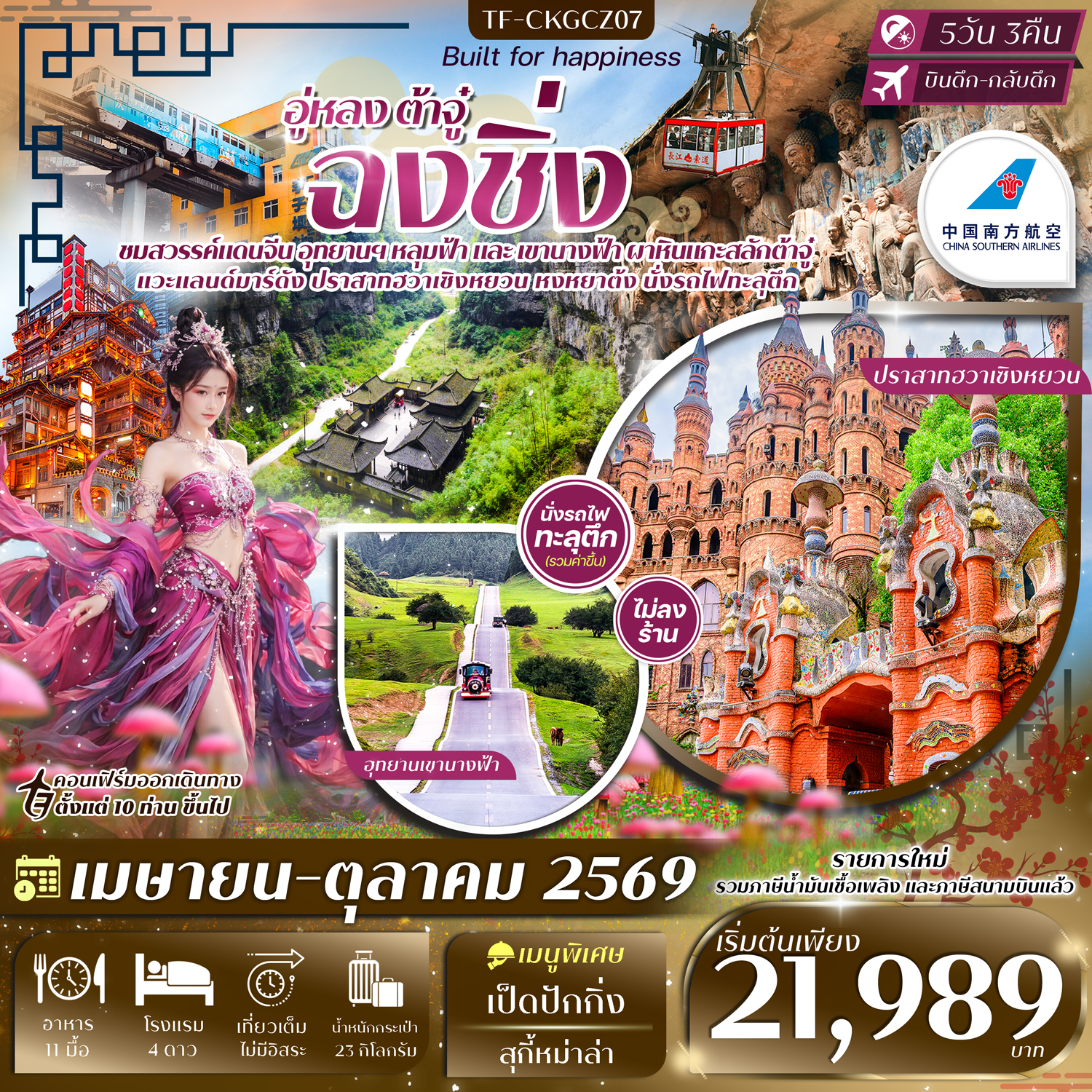 ทัวร์เฉิงตู ฉงชิ่ง 2569 เช็คอิน 2 มหานคร อุทยานหลุมฟ้า ผาหินต้าจู๋ แลนด์มาร์คดัง แพนด้ายักษ์ปีนตึก 6 วัน 5 คืน นั่งรถไฟทะลุตึก (ทัวร์ไม่ลงร้านช้อป)