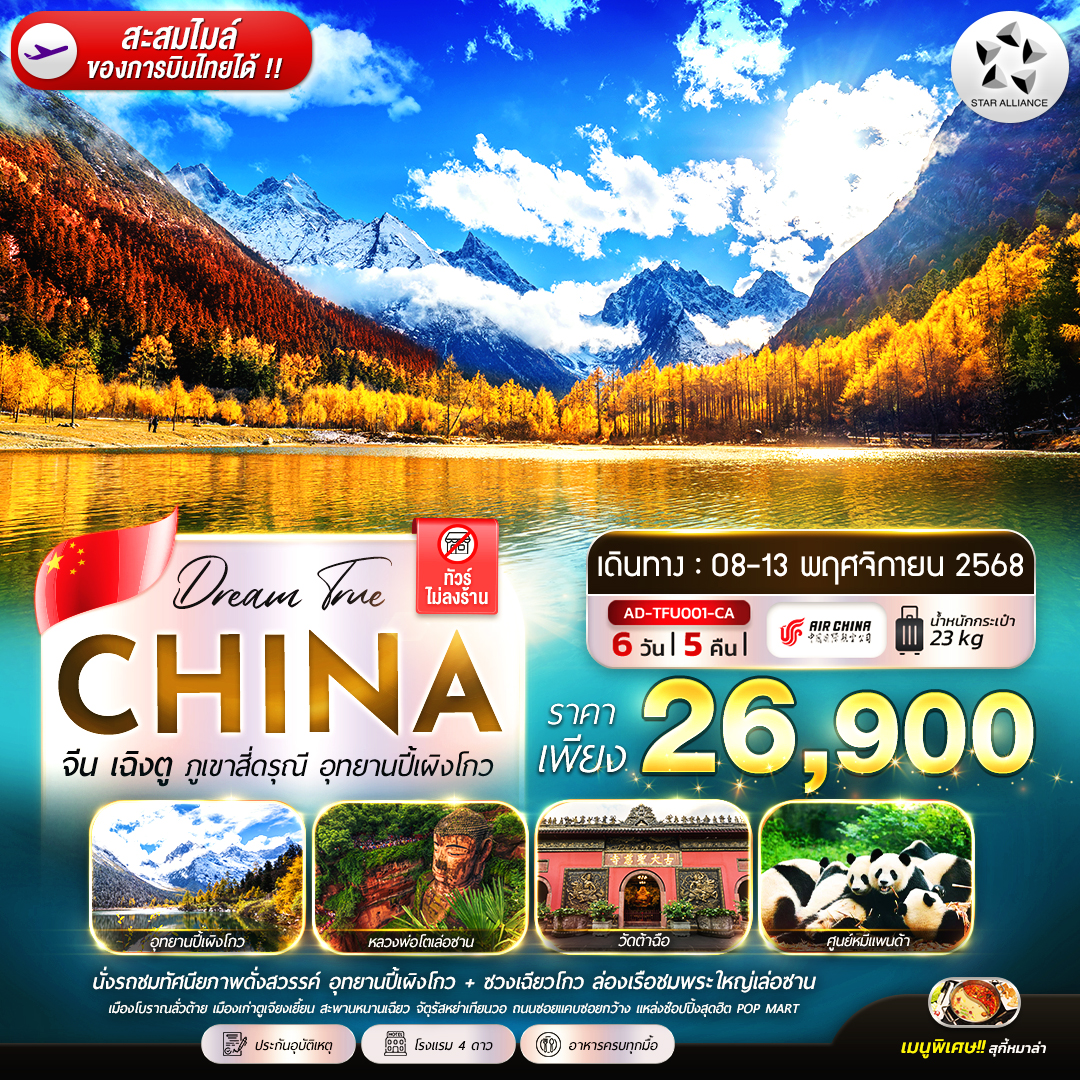 ทัวร์เฉิงตู ปีใหม่ 2026 ภูเขาสี่ดรุณี ภูเขาหิมะวาวู่ เล่อซาน ล่องเรือชมหลวงพ่อโตเล่อซาน Chengdu SKP 5 วัน 4 คืน (ทัวร์ไม่ลงร้านช้อป)