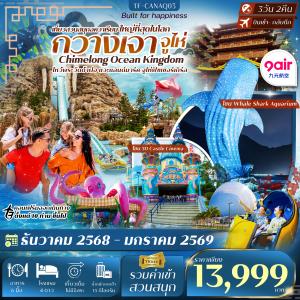 ทัวร์กวางเจา จูไห่ 2569 Chimelong Ocean Kingdom ไหว้พระวัดต้าฝอ แวะแลนด์มาร์ค จูไห่ฟิชเชอร์เกิร์ล โซน Whale Shark Aquarium 3 วัน 2 คืน (เที่ยวเต็มไม่มีอิสระ) รวมค่าเข้า สวนสนุก