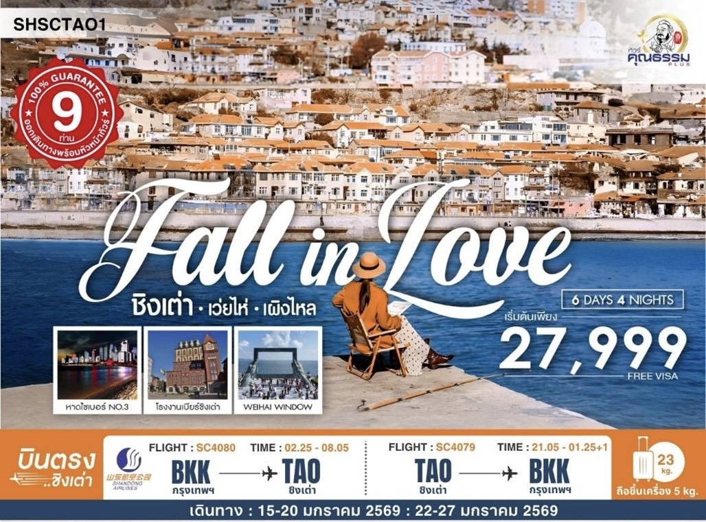 ทัวร์ชิงเต่า ปีใหม่ 2569 หมู่บ้านชาวประมงซาจื่อโขว่ ภูเขาเหลาซาน สะพานจ้านเฉียว ชมพิพิธภัณฑ์เบียร์ชิงเต่า 5 วัน 4 คืน อิสระท่องเที่ยว 1 วัน (ทัวร์ไม่ลงร้านช้อป)
