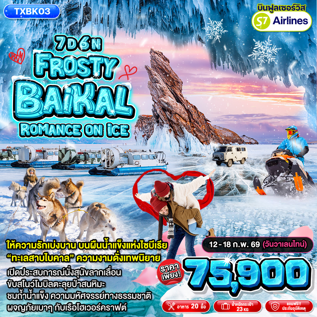 ทัวร์รัสเซีย ทะเลสาบไบคาล นั่งสุนัขลากเลื่อน เรือโฮเวอร์คราฟต์ ถ้ำน้ำแข็งและน้ำแข็งย้อย ขับสโนว์โมบิล ชมปรากฎการณ์ธรรมชาติน้ำแข็งสีคราม 7 วัน 6 คืน