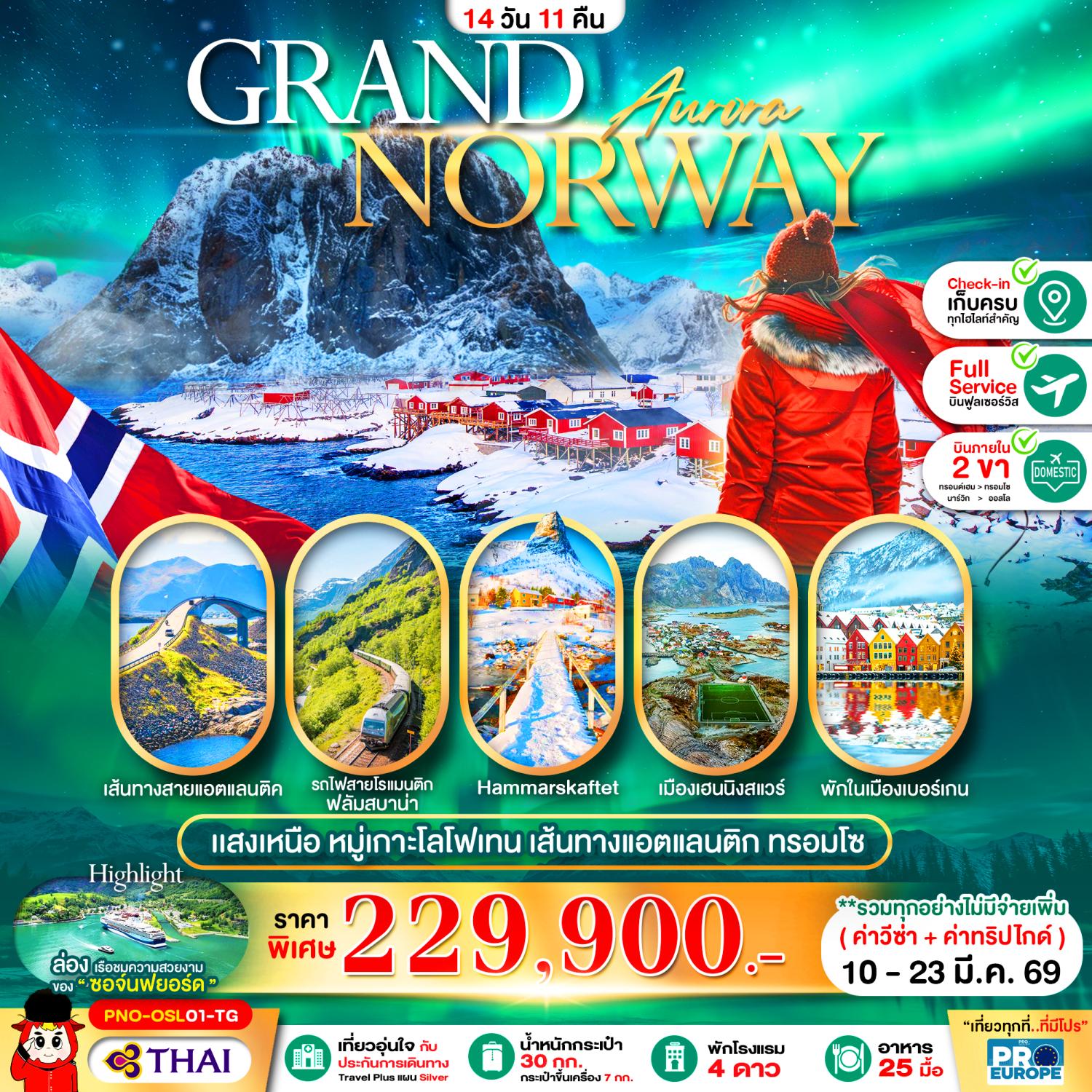 ทัวร์นอร์เวย์ 2569 นั่งเลื่อนหิมะกวางเรนเดียร์ สโนว์โมบิล ฟาร์มสุนัขฮัสกี้ ยอดเขานาร์วิกฟเยลเลต ล่องเรือสปีดโบ๊ทชมโทรลล์ฟยอร์ด 10 วัน 7 คืน (ตามล่าแสงเหนือบนเรือ) สายการบิน Thai Airways (TG)