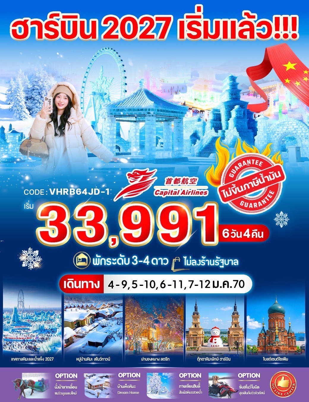 บินตรงฮาร์บิน 2570 เทศกาลหิมะและน้ำแข็งที่ใหญ่ที่สุดในโลก หมู่บ้านหิมะ สโนว์ทาวน์ ตุ๊กตาหิมะยักษ์ ฮาร์บิน โบสต์เซนต์โซเฟีย 6 วัน 4 คืน (ทัวร์ไม่ลงร้านช้อป)