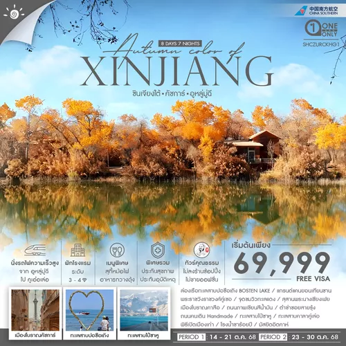 ทัวร์ซินเจียงใต้ ใบไม้เปลี่ยนสี คัชการ์ คู่เชอ อูหลู่มู่ฉี แกรนด์แคนยอน เทียนซาน ทะเลสาบคาลาคู่เล่อ 8 วัน 7 คืน นั่งรถไฟความเร็วสูง (ทัวร์ไม่ลงร้านช้อป)