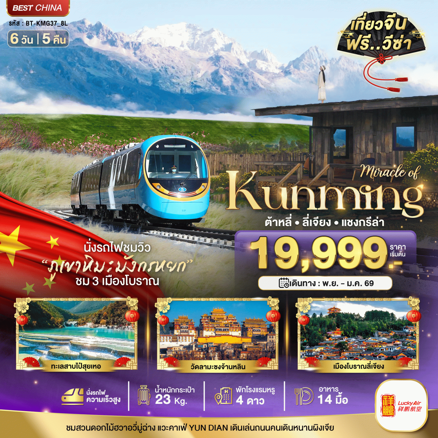 ทัวร์คุนหมิง ลี่เจียง ต้าหลี่ แชงกรีล่า ปีใหม่ 2026 ภูเขาหิมะมังกรหยก นั่งรถไฟความเร็วสูง นั่งกระเช้าใหญ่ 6 วัน 5 คืน ชมโชว์ IMPRESSION LIJIANG (ทัวร์ไม่ลงร้านช้อป)
